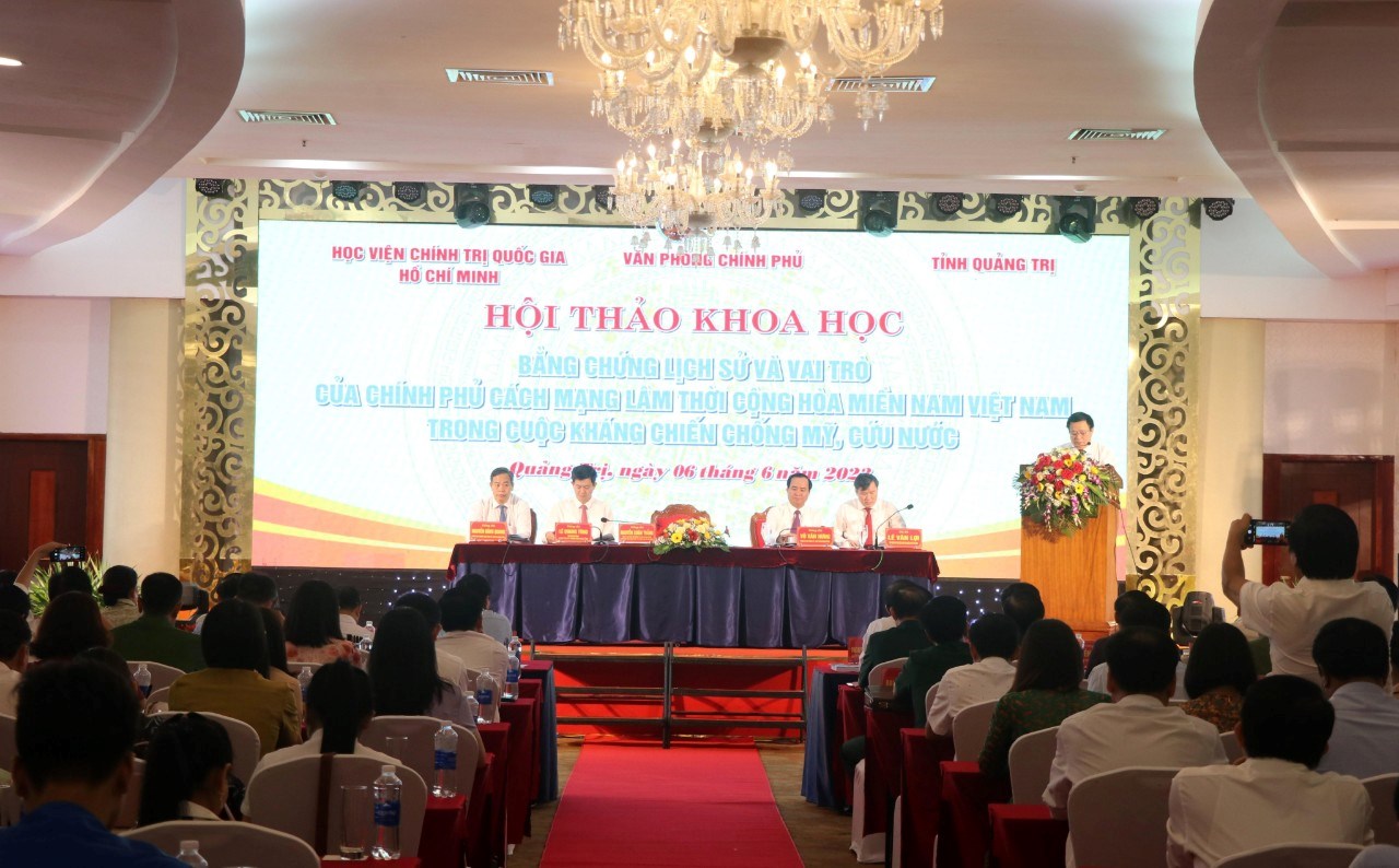 Sáng 6/6, tại TP Đông Hà, tỉnh Quảng Trị phối hợp với Học viện Chính trị quốc gia Hồ Chí Minh và Văn phòng Chính phủ tổ chức Hội thảo khoa học cấp Bộ “Bằng chứng lịch sử và vai trò của Chính phủ Cách mạng lâm thời Cộng hòa miền Nam Việt Nam trong cuộc kháng chiến chống Mỹ, cứu nước”.