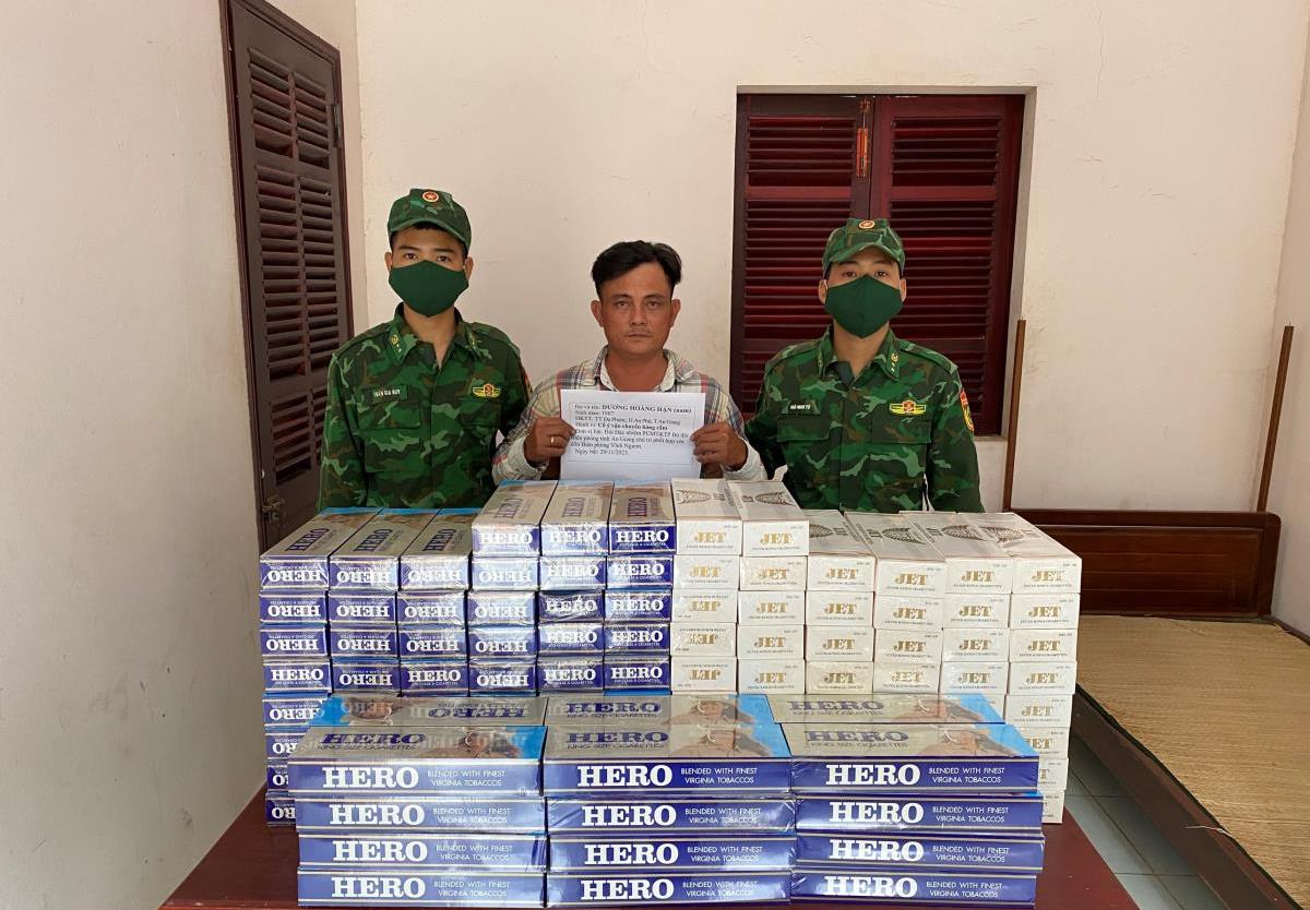 Cụ thể, ngày 30/11 tổ công tác của Đồn Biên phòng Vĩnh Nguơn, BĐBP An Giang phát hiện 1 đối tượng vác hàng hóa từ kênh 79, khu vực khóm Vĩnh Chánh 3, phường Vĩnh Nguơn, thành phố Châu Đốc, tỉnh An Giang, sát biên giới theo đường bờ ruộng vào nội địa có biểu hiện nghi vấn. Tổ công tác phát hiện đối tượng khi đi được khoảng 100m về phía Việt Nam thì áp sát yêu cầu để kiểm tra. Qua kiểm tra, phát hiện đối tượng tên Lê Long Thịnh (SN 2003), thường trú tại Châu Phú A, TP.Châu Đốc, tỉnh An Giang, mang 2 bọc nilon màu đen, có chứa 950 bao thuốc lá Indigo. Trị giá hàng hóa khoảng 15 triệu đồng. Đối tượng Lê Long Thịnh khai nhận mua số thuốc lá trên từ một người Campuchia, để vận chuyển qua biên giới về Việt Nam.
