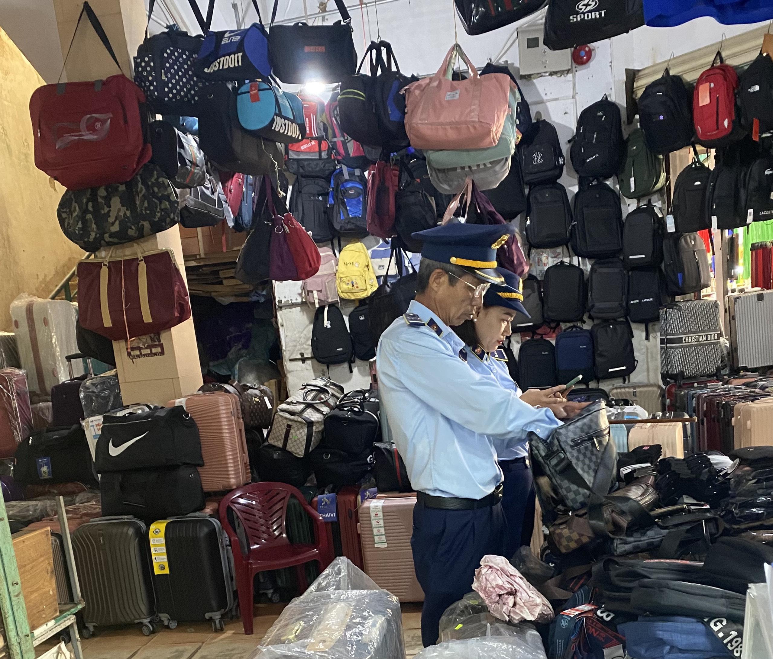 Qua kiểm tra, Đoàn kiểm tra phát hiện tại quầy hàng của hộ kinh doanh Nguyễn Thị Hồng đang trưng bày để bán 11 cái túi xách và va li giả mạo các nhãn hiệu của LOUIS VUITTON MALLETIER đang được bảo hộ tại Việt Nam.