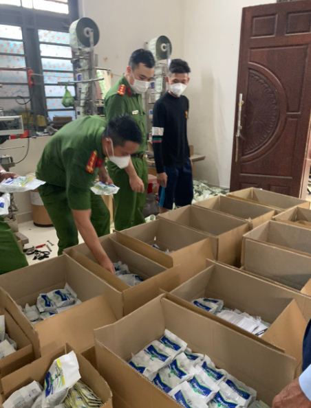 Nhận thấy vụ việc có dấu hiệu của hành vi sản xuất thuốc trừ sâu giả, lực lượng chức năng tiến hành lập biên bản vụ việc, tạm giữ các tang vật, phương tiện gồm 90.150 gói và 4,5 kg sản phẩm thuốc trừ sâu các loại, 496,5 kg bao bì các loại, 371,9 kg nguyên liệu dạng bột và 200 lít nguyên liệu dạng lỏng dùng sản xuất, 07 máy cơ khí đóng gói sản phẩm. Vụ việc đang được cơ quan Công an huyện Bến Lức phối hợp với các lực lượng chức năng có liên quan tiếp tục xác minh làm rõ để xử lý theo quy định pháp luật.