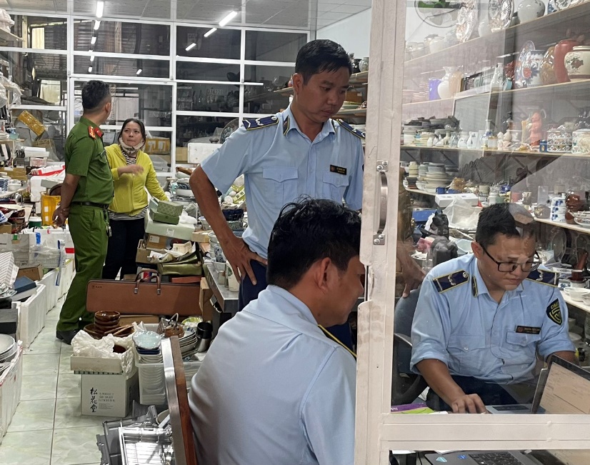 Qua kiểm tra, đã phát hiện cơ sở kinh doanh hàng gia dụng nhưng không đăng ký thành lập hộ kinh doanh theo quy định, phát hiện tạm giữ 2.693 kg sành, sứ, gốm các loại, 58 sản phẩm gia dụng và 37 sản phẩm mỹ phẩm nghi không rõ nguồn gốc xuất xứ và nhập lậu kinh doanh trên nền tảng facebook, tiktok, tổng giá trị hàng hóa là 52.430.000 đồng. Đội QLTT số 6, đã phát hiện tạm giữ 37 sản phẩm mỹ phẩm như: kem mặt hiệu Meiduzi Day Cream, Berry Plus Extra Whitening Cream 5X, 4K Plus Whitening Night Cream 5X Goji Berry, sản phẩm sữa tắm Ramzer Amino Acid, phấn nền hiệu Missha Velvet Finish Cushion No21, Espoir Pro Tailor Be Velvet Cover Cushion, Clio Kill Cover The New Founwear Cushion, 3CE Stylenanda; Serum hiệu Dongsung Rannce…Tất cả hàng hóa vi phạm được tạm giữ, thiết lập hồ sơ chuyển Cục QLTT xử lý theo quy định.