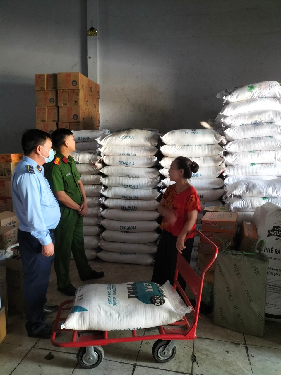 Lực lượng chức năng thực hiện kiểm tra phát hiện số lương lớn đường cát nhập lậuThông qua làm việc với lực lượng chức năng, người đại diện hộ kinh doanh đã thừa nhận đang kinh doanh đường cát nhập lậu, do nước ngoài sản xuất, không có hóa đơn, chứng từ, trị giá hàng hóa vi phạm theo giá niêm yết là 98,8 triệu đồng.