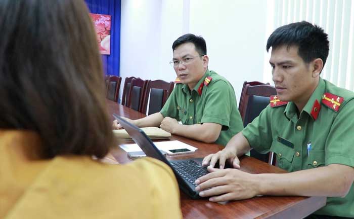 Chị H.T.H. đến Phòng An ninh mạng và phòng chống tội phạm sử dụng công nghệ cao, Công an tỉnh tố cáo hành vi lừa đảo của các đối tượng.