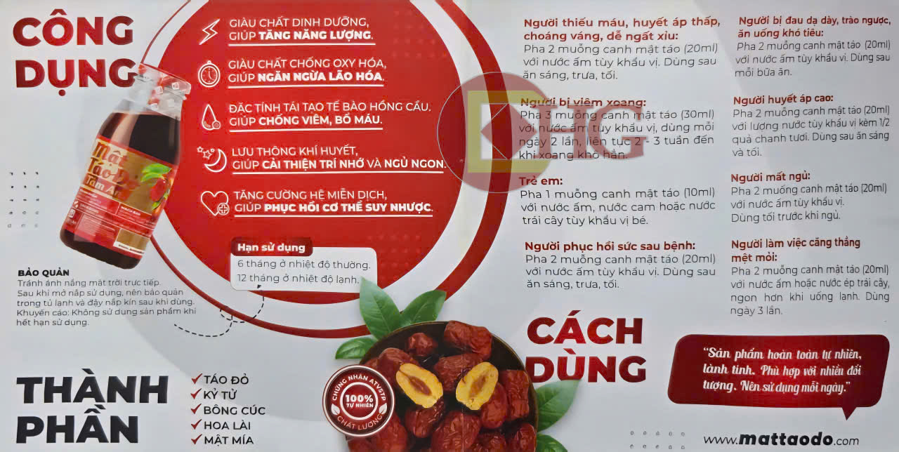 Trên bao bì sản phẩm, website được ghi là https://mattaodo.com, cho phép đặt hàng trực tiếp. Tuy nhiên, theo tra cứu, website này chưa thông báo với Bộ Công Thương theo quy định.