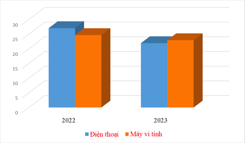 So với 1 năm trước đây, cả 2 nhóm hàng đều có kim ngạch sụt giảm hàng tỷ USD, tuy nhiên, điện thoại giảm sâu hơn nên không còn giữ được vị trí số 1 về xuất khẩu.