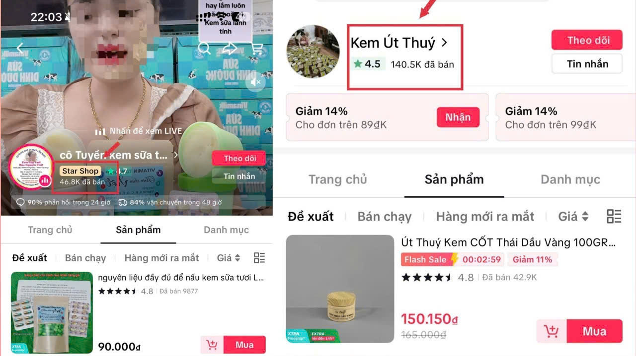 Điểm chung của những tài khoản trên là có lượt tương tác rất lớn và lượt mua hàng khủng. Cụ thể, theo thống kê trên tài khoản TikTok “Út Thuý”, tổng số lượng hàng hoá bán ra lên tới con số hơn 140 nghìn sản phẩm; Với tài khoản “Cô Tuyền kêm sữa tươi nấu” số lượng mỹ phẩm bán ra cũng đạt con số gần 47 nghìn sản phẩm… Một con số thống kê đáng báo động.