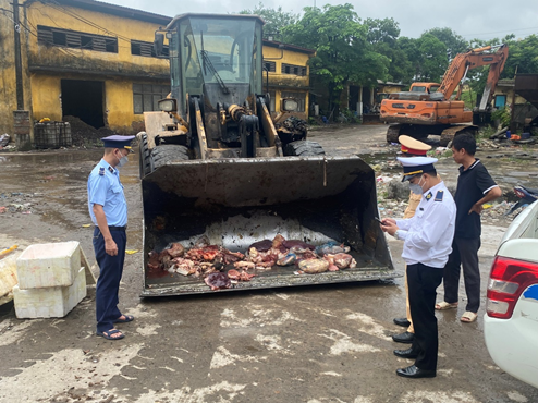 Lái xe Q.V.T. khai nhận đã mua số hàng hóa trên trôi nổi trên thị trường nên không có hóa đơn, chứng từ và giấy kiểm dịch. Đội QLTT số 5 đã lập biên bản vi phạm hành chính và trình Đội trưởng xử phạt số tiền 5,5 triệu đồng về hành vi vận chuyển sản phẩm động vật không rõ nguồn gốc, xuất xứ. Đồng thời, buộc tiêu hủy toàn bộ hàng hóa vi phạm theo đúng quy định của pháp luật.