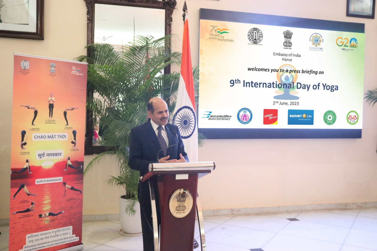 Ngày 2/6, Đại sứ quán Ấn Độ tại Hà Nội tổ chức buổi họp báo giới thiệu chuỗi hoạt động hưởng ứng Ngày Quốc tế Yoga (IDY) lần thứ 9.