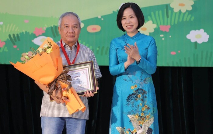 Nhà văn Trần Đức Tiến nhận giải Hiệp sĩ Dế Mèn