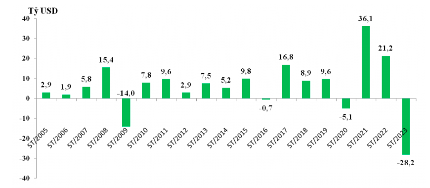 Đây là mức giảm lớn nhất từ trước tới nay, cao hơn cả so với con số giảm hơn 14 tỷ USD của 5 tháng đầu năm 2009 là năm suy thoái kinh tế mạnh trên toàn thế giới.