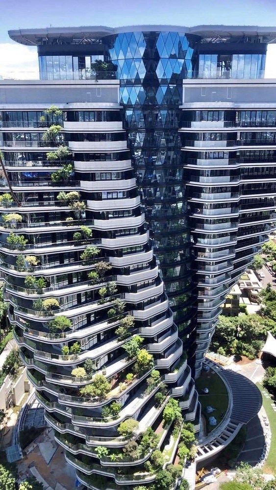 Nằm ké bên tòa tháp Taipei 101 nổi tiếng ở Đài Bắc, tòa nhà Tao Zhu Yin Yuan là công trình kiến trúc xanh, mang vẻ đẹp độc đáo của hệ sinh thái bền vững.Dưới bàn tay thiết kế của kiến trúc sư Vincent Callebaut, Tao Zhu Yin Yuan cao 21 tầng, trên nền diện tích hơn 42.300m2. Tòa tháp tạo nên bởi hai chuỗi xoắn 90 độ từ chân đến đỉnh tòa tháp, mô phỏng theo hình dạng của chuỗi DNA.Phần mặt tiền, ban công, mái nhà của tháp thân thiện với môi trường khi được bao phủ bởi 23.000 cây xanh lớn, nhỏ, giúp hấp thụ 130 tấn khí thải CO2 mỗi năm. Vậy nên, Tao Zhu Yin Yuan được cho là biểu tượng của nguồn gốc sự sống và là mối giao hòa giữa thiên nhiên và con người.Trên nền ý tưởng khu dân cư sinh thái bền vững, thách thức của kiến trúc sư người Bỉ cùng cộng sự là dựng xây công trình "xanh", chịu được những rủi ro do thời tiết gây ra như động đất. Ngoài hình dạng xoắn ốc, tòa nhà còn gây ấn tượng mạnh bởi hình khối bên ngoài được tạo hình khá lạ như một tác phẩm điêu khắc khổng lồ.Một số chi tiết nổi bật của tòa nhà có thể kể đến như sàn xoay dần từ tầng trệt lên đến tầng mái đúng bằng một góc 45 độ tạo cảm giác như cả công trình đang đi lên. Việc tòa nhà "xoay" đảm bảo người dân có thể nhìn toàn cảnh đường chân trời một cách chân thực nhất. Một lõi trung tâm cố định chứa lưu thông theo chiều dọc được dựng lên ở mỗi đơn vị tòa nhà lớn. Cấu trúc ứng dụng trong tòa nhà là hệ lưới, nhằm gia tăng khả năng chịu đựng của kết cấu nếu có rung lắc mạnh xảy ra.Mỗi tầng, các căn hộ được giới chuyên gia tính toán, thiết kế sao vừa giảm được tiêu thụ năng lượng nhưng vẫn tận dụng được ánh sáng, tận dụng hệ thống thông gió tự nhiên.Ngoài ra, Tao Zhu Yin Yuan còn sở hữu bể chứa nước mưa và các tấm pin năng lượng Mặt trời trên mái nhà giúp tái tạo năng lượng. Bên cạnh đó, các thiết kế cũng xem xét đến tải trọng và không gian bao phủ cho cây trồng trên ban công. Việc phân bổ đường ống, hệ thống thoát nước, hộp cây trồng cây bằng thép không gỉ được tích hợp hoàn hảo trong độ dày của tấm ghép ở ban công cũng giúp thiết kế tòa nhà hài hòa và sinh động hơn."Đây là một ý tưởng hiện đại, sử dụng các yếu tố tự nhiên để tạo ra tòa nhà thoáng khí, đảm bảo sức khỏe thể chất và tinh thần cho cư dân", kiến trúc sư Vincent Callebaut chia sẻ.Vị "cha đẻ" của tòa tháp cũng tiết lộ, theo số liệu thống kê, năm 2014, địa phương này thải 250 triệu tấn CO2 vào không khí. Callebaut hy vọng công trình là một bước nhỏ nhưng nó sẽ tạo ra chuyển biến lớn trong cuộc chiến chống biến đổi khí hậu toàn cầu."Đến năm 2050, dân số thế giới sẽ đạt 9 tỷ người với 80% trong số đó sống ở các thành phố lớn. Vì thế, chúng ta cần hành động ứng phó biến đổi khí hậu ngay từ bây giờ, hình thành lối sống mới có trách nhiệm với hệ sinh thái và đưa thiên nhiên vào trong thành phố", Callebaut nói.