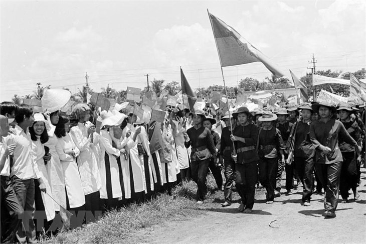 | Nhân dân Vĩnh Long mừng ngày chiến thắng (1/5/1975). (Ảnh: Hứa Kiểm/TTXVN) |