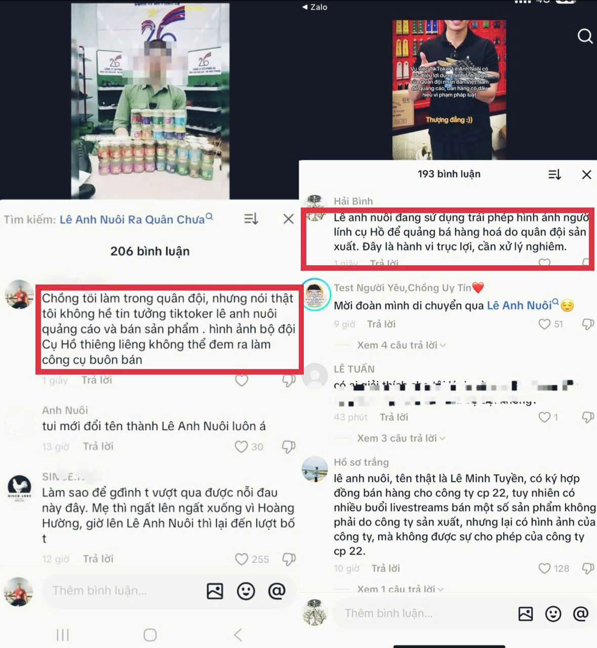 Bài viết của Tạp chí CHG chỉ rõ: nhiều nội dung quảng cáo từ tài khoản TikTok Lê Anh Nuôi (tên thật Lê Minh Tuyển) đã sử dụng hình ảnh, logo của Công ty Cổ phần 26 và Công ty Cổ phần 22 (thuộc Tổng cục Hậu cần - Kỹ thuật, Bộ Quốc phòng), lặp đi lặp lại trong các video, đi kèm lời mời chào sản phẩm dân sự. Chính yếu tố này đã khiến cộng đồng mạng dậy sóng.