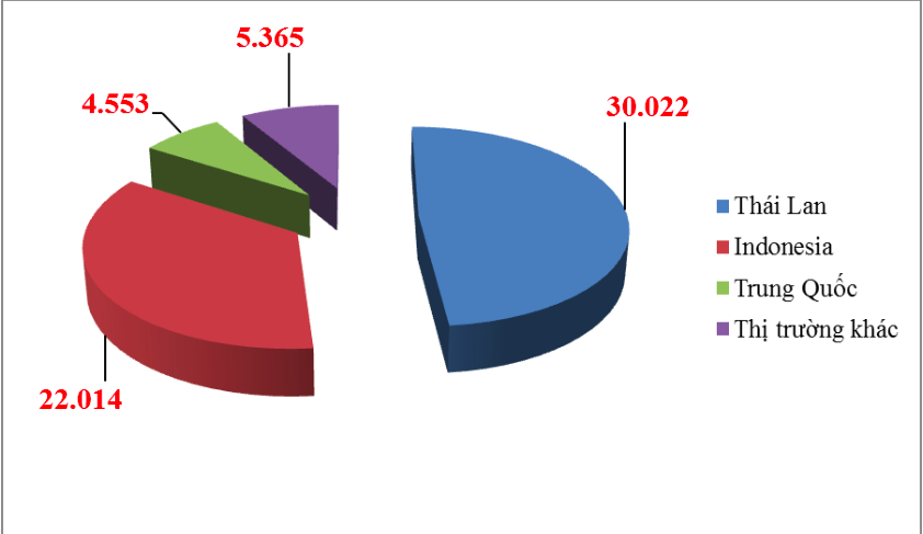3 thị trường nhập khẩu lớn nhất là Thái Lan, Indonesia và Trung Quốc với kết quả lần lượt là: 30.022 chiếc, 614,47 triệu USD; 22.014 chiếc, 296,4 triệu USD; 4.553 chiếc, 172,7 triệu USD.