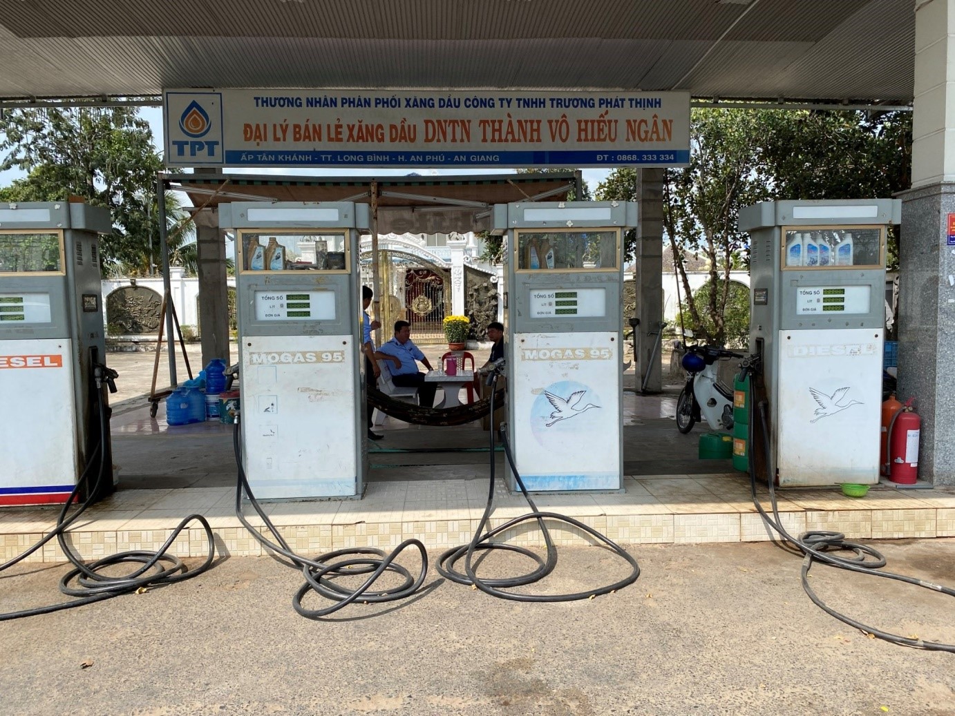 Đại lý bản lẻ xăng dầu vi phạm.Đội Quản lý thị trường số 4 (ngày 7/2/2023) đã kiểm tra Doanh nghiệp tư nhân Thành Võ - Hiếu Ngân (khóm Tân Khánh, thị trấn Long Bình, huyện An Phú, tỉnh An Giang). Tổ công tác phát hiện doanh nghiệp đóng cửa ngừng bán hàng (có để bảng ghi hết xăng). Tiến hành kiểm tra lượng xăng, dầu tại bể chứa của doanh nghiệp, lực lượng chức năng xác nhận hiện trạng hết xăng, dầu là đúng thực tế.