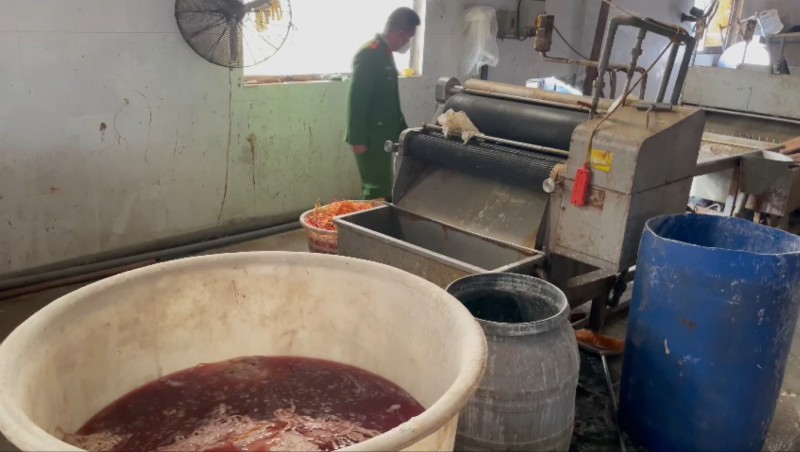 Tổ công tác đã lấy mẫu nước tại vị trí xả thải, mẫu lòng lợn, mẫu thành phẩm để kiểm nghiệm, đồng thời tạm giữ 12 tấn lòng lợn các loại và 13 tấn phụ gia khác để phụ vụ công tác điều tra. Công an tỉnh Quảng Ninh đang tiếp tục xác minh làm rõ vi phạm của cơ sở để xử lý nghiêm theo quy định của pháp luật.