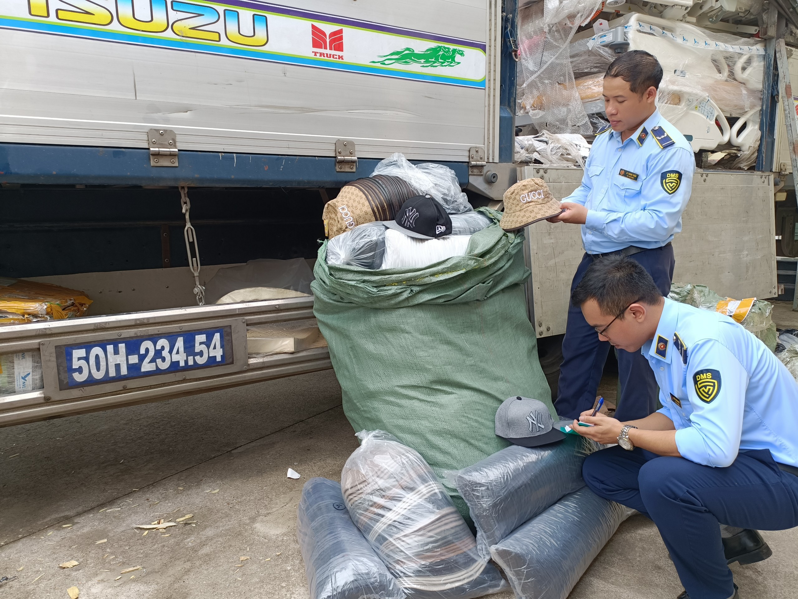 Qua kiểm tra phương tiện, Đoàn kiểm tra phát hiện trên xe vận chuyển có 1.300 cái mũ lưỡi trai và mũ rộng vành có dấu hiệu giả mạo các nhãn hiệu của Adidas AG, Tommy Hilfiger Licensing B.V., Balenciaga, Mlb, Guccio Gucci S.p.A., Puma Se, Louis Vuitton Malletier, Chanel, Christian Dior Couture, đang được bảo hộ tại Việt Nam.