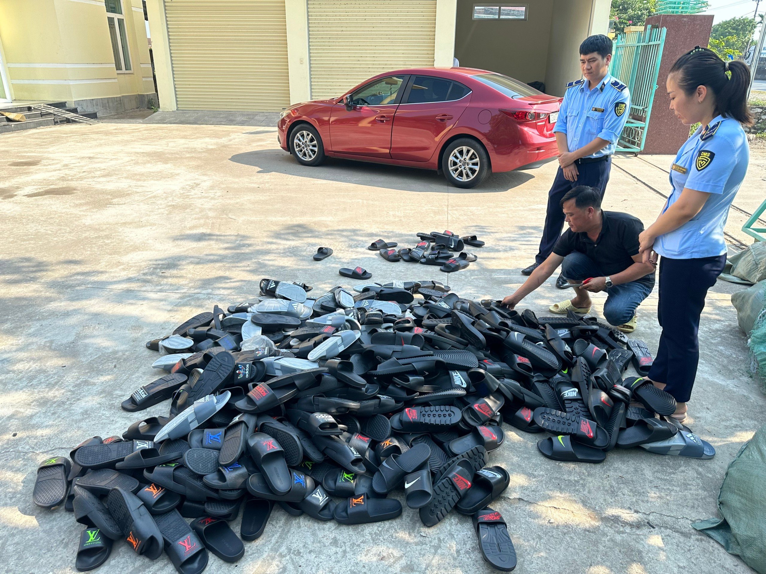 Kết quả phát hiện các tang vật vi phạm trong đó có 240 đôi dép không rõ nguồn gốc, xuất xứ có dấu hiệu giả mạo các nhãn hiệu adidas, Nike, Louis Vuitton đang được bảo hộ tại Việt Nam.