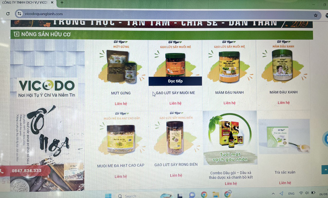 Qua kiểm tra phát hiện website: https://vicodoquangbinh.com của Công ty đang hoạt động và bán thực phẩm các loại, trên website này có chức năng đặt hàng trực tuyến, có đầy đủ thông tin về giá cả, phương thức thanh toán của hàng hóa.