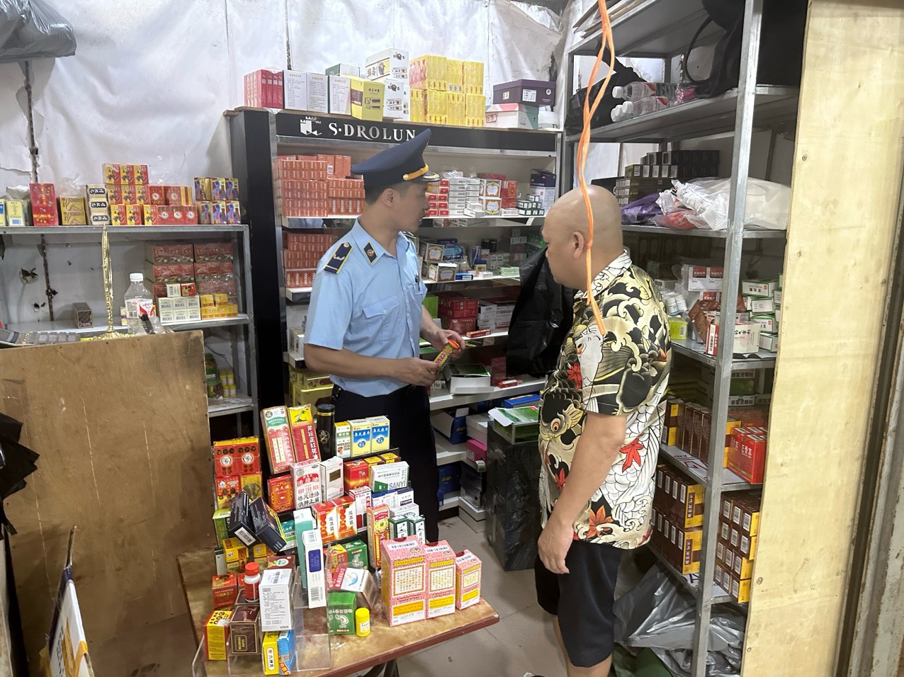 Thực hiện chỉ đạo của Cục QLTT tỉnh Quảng Ninh và Ban chỉ đạo 389 thành phố Móng Cái, ngày 13/4/2024, Đội QLTT số 4 phối hợp cùng Công an Thành phố, Chi cục Hải quan cửa khẩu Móng Cái và Ban Quản lý chợ Móng Cái kiểm tra, 02 hộ kinh doanh có địa chỉ tại Tầng 3, Chợ Trung tâm Móng Cái, phường Trần Phú, thành phố Móng Cái, tỉnh Quảng Ninh: Tại Hộ kinh doanh V.V.T, phát hiện 1.196 sản phẩm thuốc tân dược, nhập lậu; Tại Hộ kinh doanh N.V.N, phát hiện 962 sản phẩm thuốc tân dược, nhập lậu.