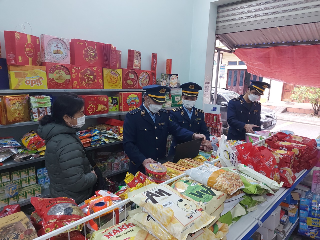 (CHG) Thực hiện Kế hoạch cao điểm kiểm tra thị trường Tết của Cục QLTT tỉnh Quảng Ninh, Đội QLTT số 8- Cục QLTT Quảng Ninh đã tăng cường công tác quản lý địa bàn, phát hiện xử lý vi phạm dịp trước, trong và sau Tết Nguyên đán Nhâm Dần 2022, chú trọng các mặt hàng có nhu cầu tiêu thụ cao như: thực phẩm, mỹ phẩm, rượu, thuốc lá, bánh kẹo, trang thiết bị y tế phòng chống dịch... tăng cường kiểm soát, xử lý việc sản xuất, kinh doanh hàng giả, kém chất lượng, phòng chống ngộ độc thực phẩm trên địa bàn liên huyện (Tiên Yên, Ba Chẽ, Bình Liêu).