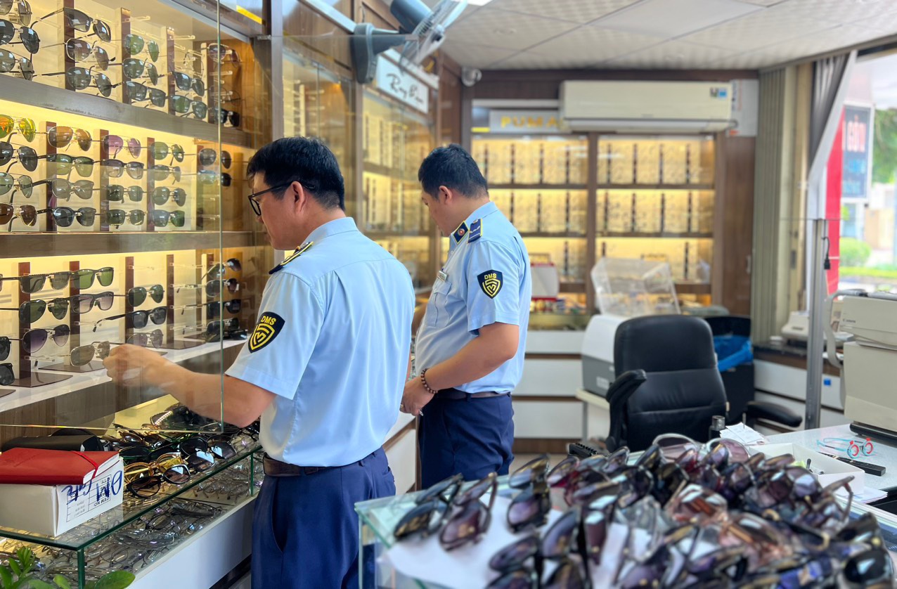 Lực lượng chức năng kiểm tra cửa hàng kinh doanh kính mắt thời trang có dấu hiệu giả mạo các nhãn hiệu Ray Ban, Chanel, Gucci.