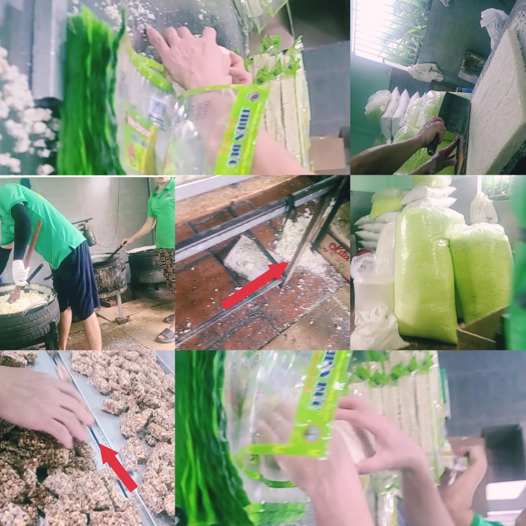 Đặc biệt, tại khu vực phối trộn nguyên liệu hiện hữu một số ca nhựa chứa dung dịch màu vàng, xanh được đặt trên bàn có dấu hiệu cáu cặn. Quan sát thực tế, sau khi cho bột và nước vào máy trộn nguyên liệu, công nhân tại đây sẽ sử dụng thìa đong ước lượng dung dịch màu xanh cho vào phối trộn cùng. Sau khoảng thời gian rất ngắn, toàn bộ bột trong máy đã chuyển sang màu xanh cốm, nhìn rất bắt mắt (!)