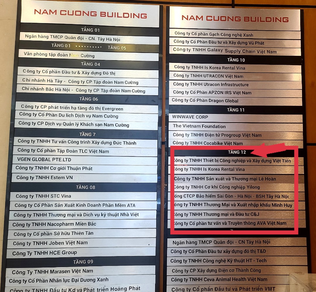 Tại tầng 12, tòa nhà văn phóng Nam Cường, phường La Khê, quận Hà Đông, thành phố Hà Nội, không có trụ sở của đơn vị phân phối sản phẩm Tiêu Viêm Nữ- Công ty Cổ phần dược phẩm quốc tế Hoàng Sơn.