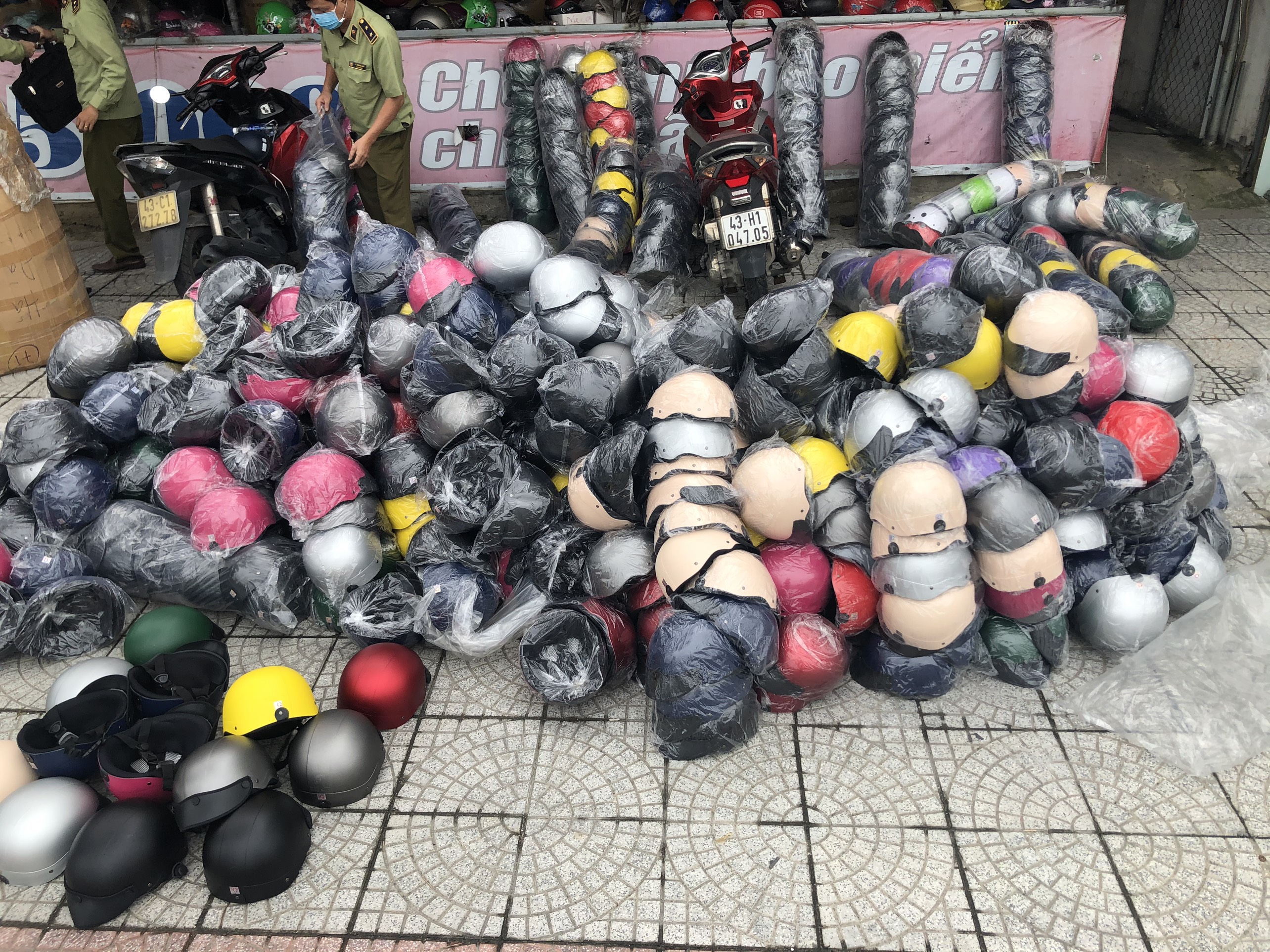 Lực lượng quản lý thị trường bắt một vụ giả mạo mũ bảo hiểm thương hiệu nổi tiếng.Tại Hà Nội hay TP. HCM cũng như nhiều địa phương khác, không khó để bắt gặp những sạp mũ bảo hiểm bày bán trên khắp vỉa hè, lòng đường. Theo mắt thường có thể thấy, nhiều mũ bảo hiểm không đạt chuẩn, bởi nó có những đặc điểm như không đầy đủ bộ phận, cấu tạo lớp vỏ bên ngoài, không có tem nhãn xuất xứ và chưa được kiểm định cũng như dán tem hợp quy CR. Tuy nhiên, nhiều người vẫn ưa thích sử dụng những chiếc mũ “thiếu chất lượng” nhưng “thừa thời trang” này.