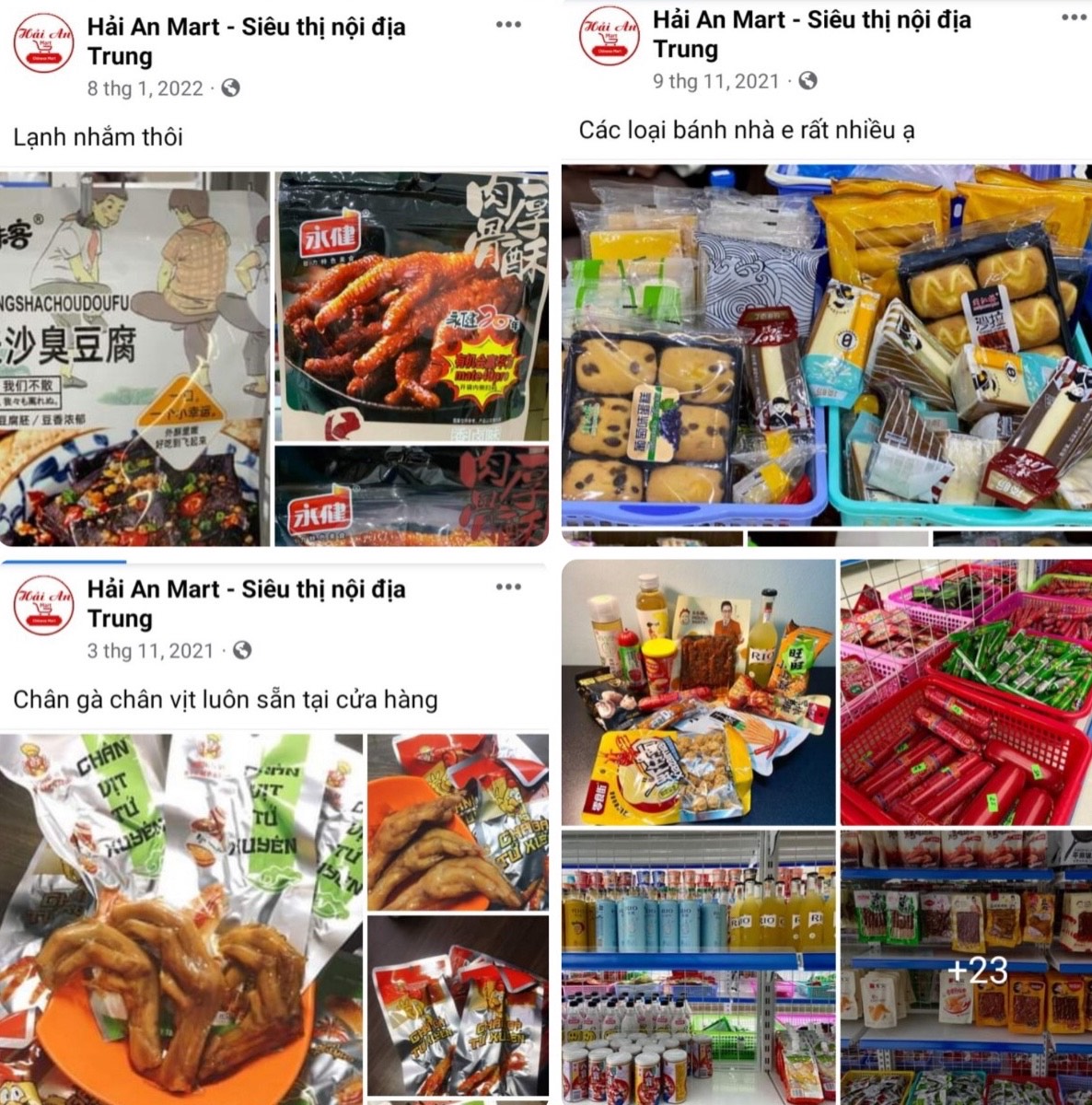 Sản phẩm là thực phẩm được nhân viên tại đây giới thiệu: Hàng nội địa Trung Quốc, không nhãn phụ tiếng Việt được bày bán la liệt tại siêu thị Hải An Mart.