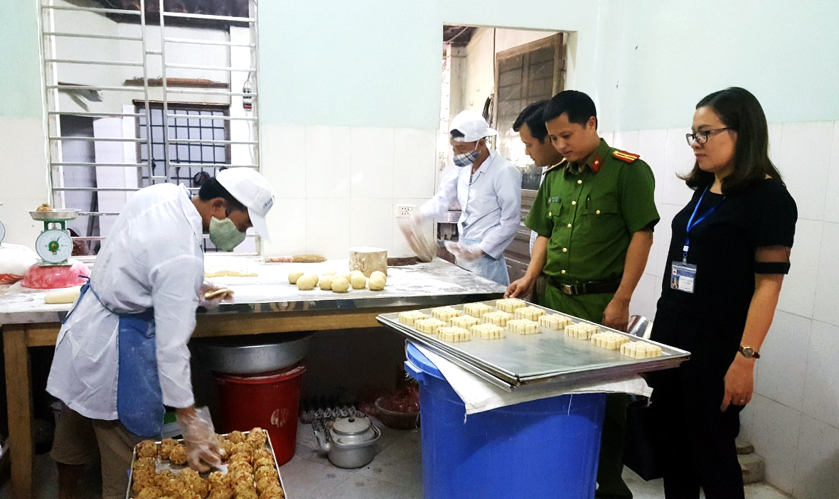 Lực lượng chức năng kiểm tra hàng hóa đảm bảo ATTP.