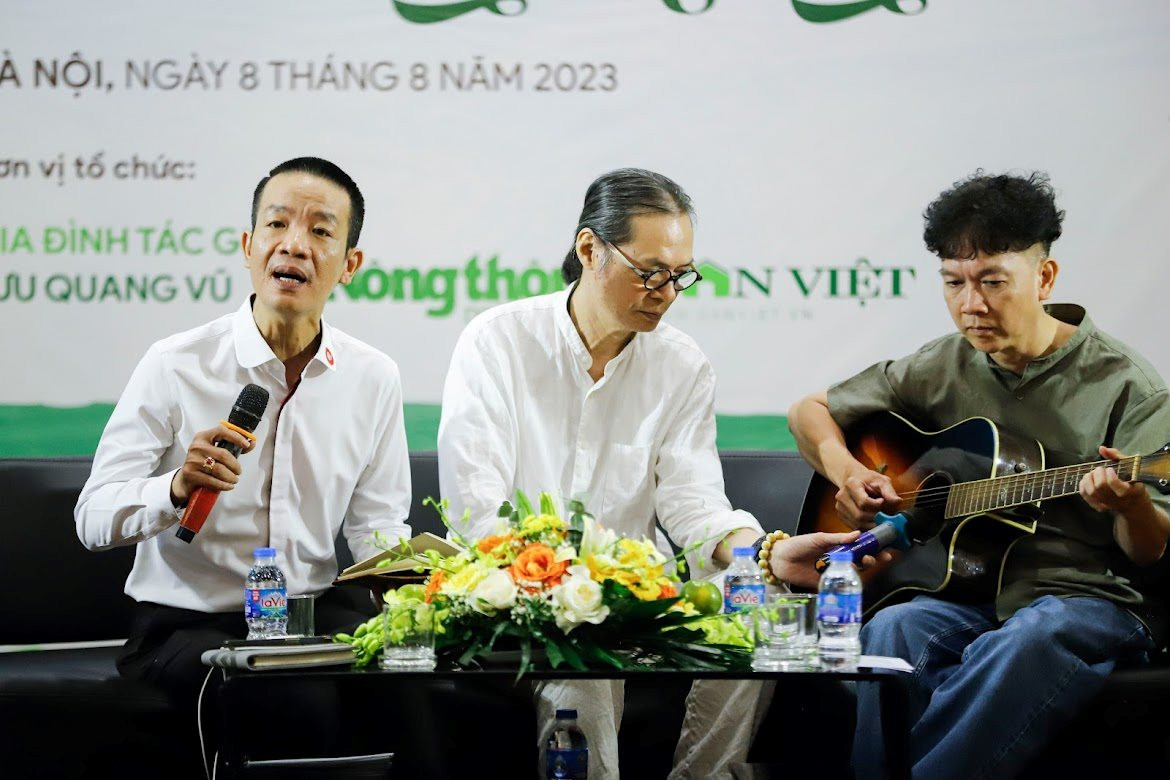 Nhạc sĩ Nguyễn Vĩnh Tiến (bên trái) thể hiện ca khúc chủ đề phổ thơ của tác giả Lưu Quang Vũ.