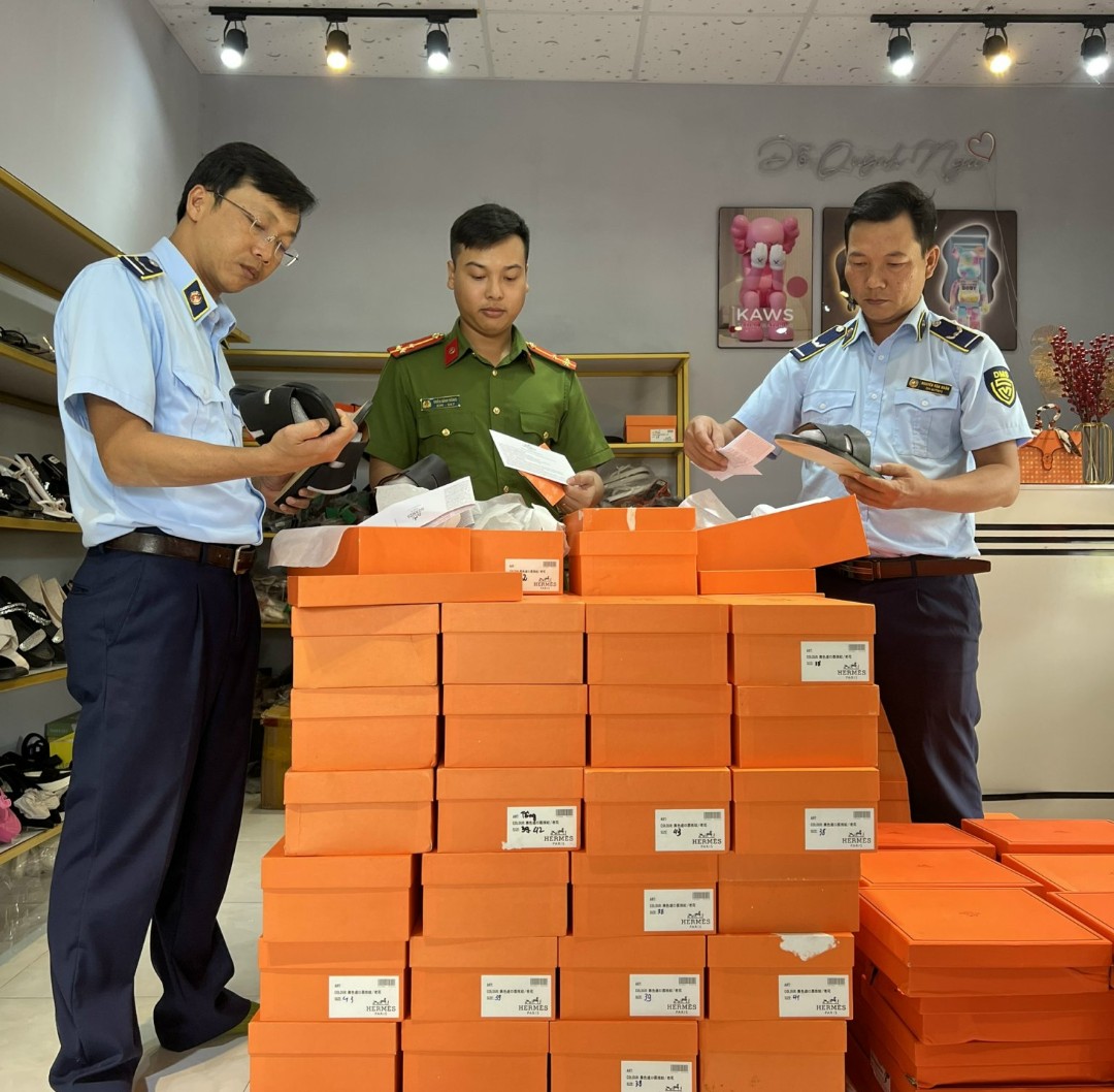 Tại thời điểm kiểm tra lực lượng chức năng phát hiện hàng hóa là dép hiệu Hermès đang trưng bày tại cửa hàng để bán có dấu hiệu giả mạo nhãn hiệu Hermès đang được bảo hộ tại Việt Nam gồm: Dép nam hiệu Hermès, số lượng: 90 đôi; đơn giá: 140.000đồng/1đôi (theo giá niêm yết tại cửa hàng). Dép nữ hiệu Hermès, số lượng: 30 đôi; đơn giá: 140.000đồng/1đôi (theo giá niêm yết tại cửa hàng). Với tổng trị giá hàng hóa vi phạm khoản 16.800.000 đồng.