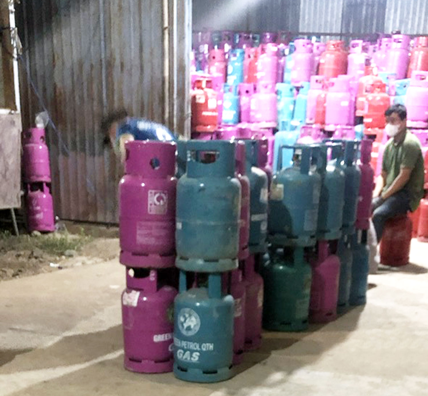 Qua kiểm tra, Đoàn kiểm tra phát hiện tại kho đang chứa 2085 chai LPG (vỏ bình ga loại 12 kg) của các hãng PM gas, Petrol Power CHH, Green Petrol QTH.
