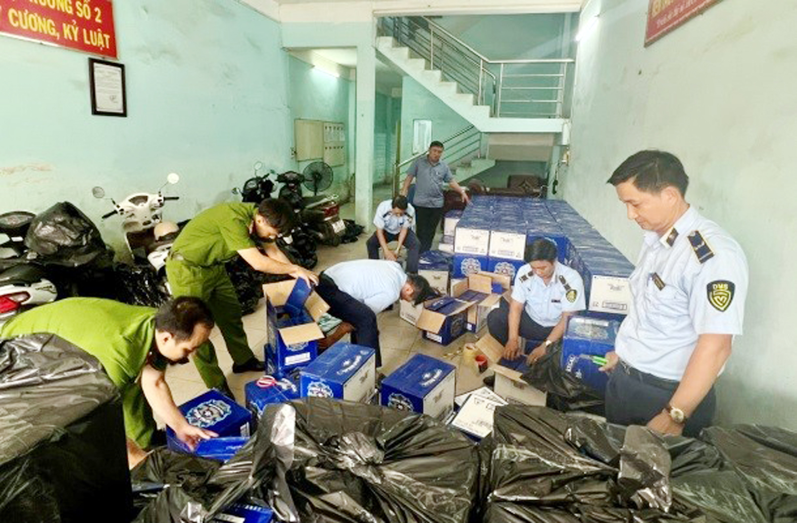 Lực lượng chức năng kiểm đếm số hàng vi phạm là 1.900 chai rượu nhãn hiệu Chivas 18, không có hóa đơn chứng từ.