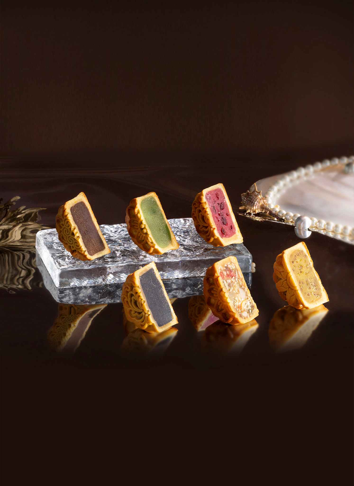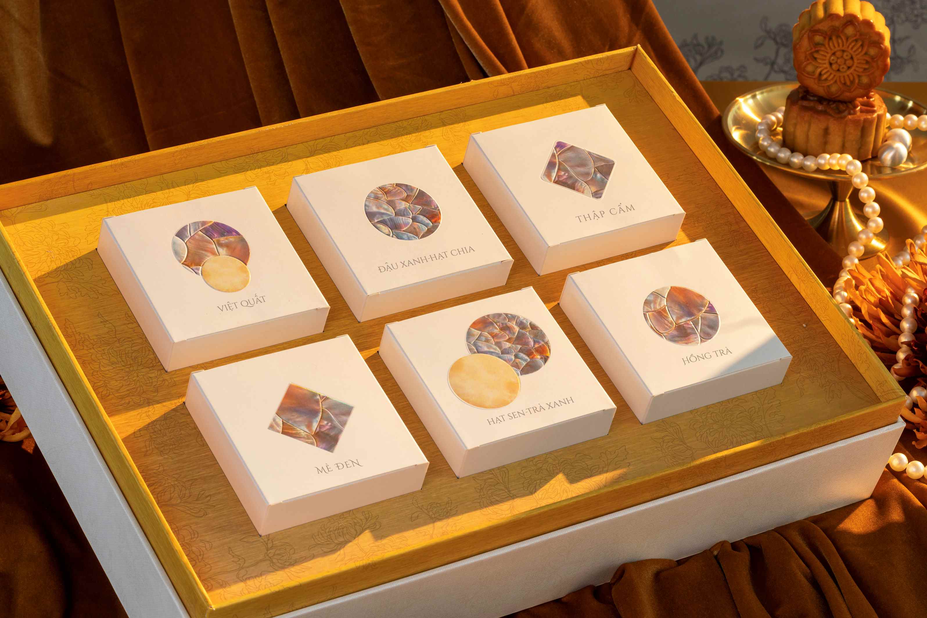 Bộ sưu tập “Nguyệt Vũ Đoàn Viên” gồm 6 hương vị tinh tuyển: Hạt sen - Trà xanh, Mè đen, Đậu xanh – Hạt chia, Hồng trà, Việt quất và Thập cẩm. Mỗi chiếc bánh là sự kết hợp hài hòa giữa hương vị truyền thống quen thuộc và nét hiện đại nhẹ nhàng. Từ hương sen ngọt thanh gợi nhớ quê nhà, đến vị Việt quất tươi mới đánh thức vị giác hiện đại, tất cả hòa quyện tạo nên một trải nghiệm ẩm thực tròn đầy và lắng đọng.