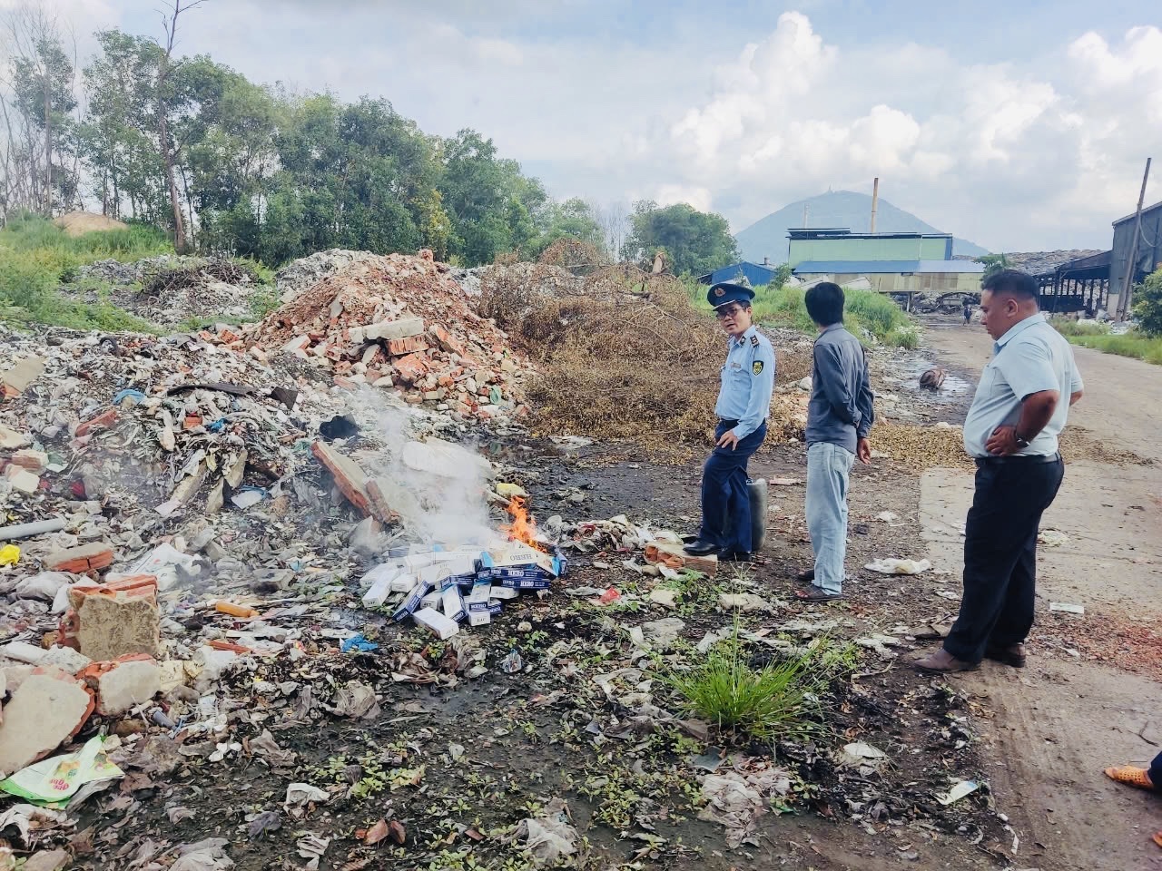 Cơ quan chức năng tiến hành tiêu huỷ toàn bộ thuốc lá nhậu lậu theo quy định