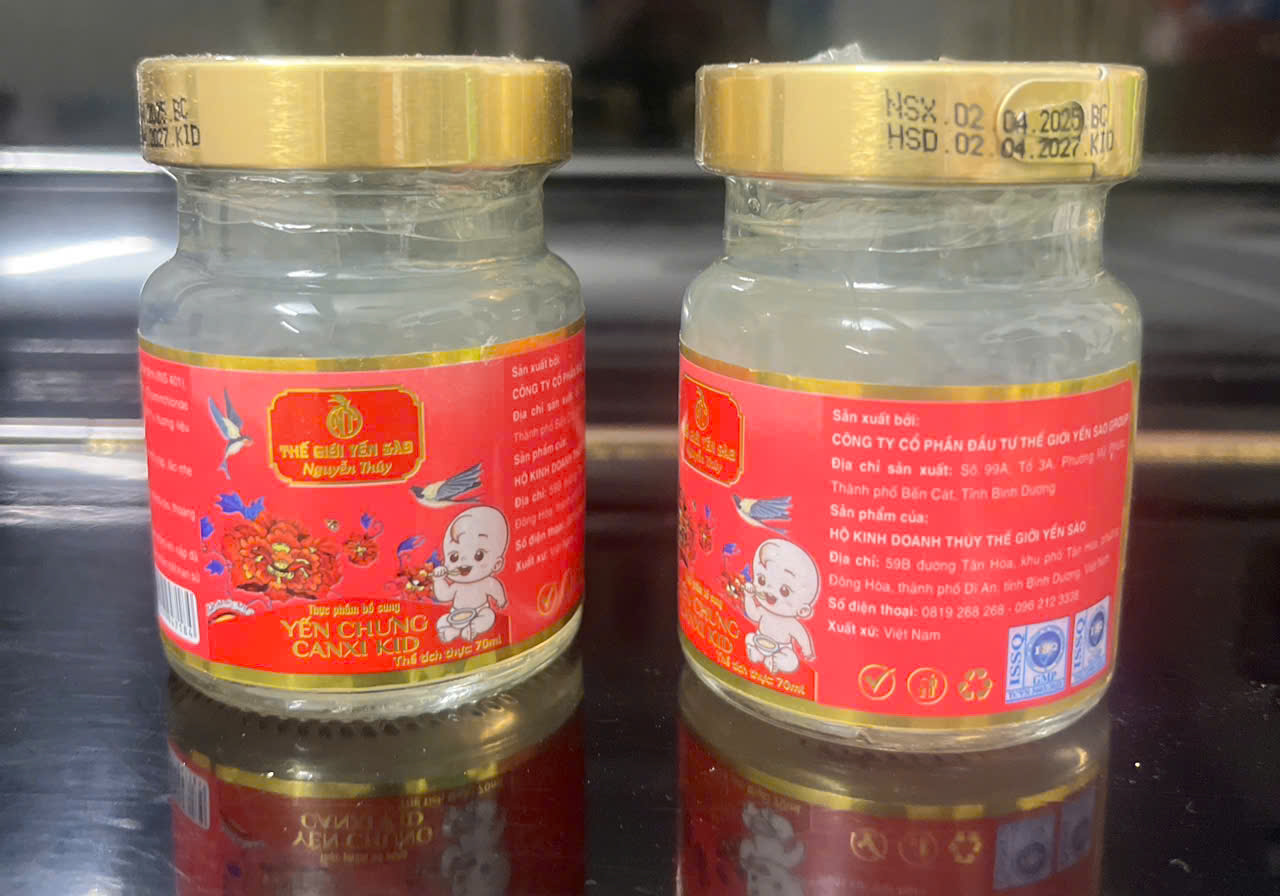 Sản phẩm Yến hũ chưng canxi kid dành cho trẻ em trên nhãn ghi: nước yến sào 35% (!)