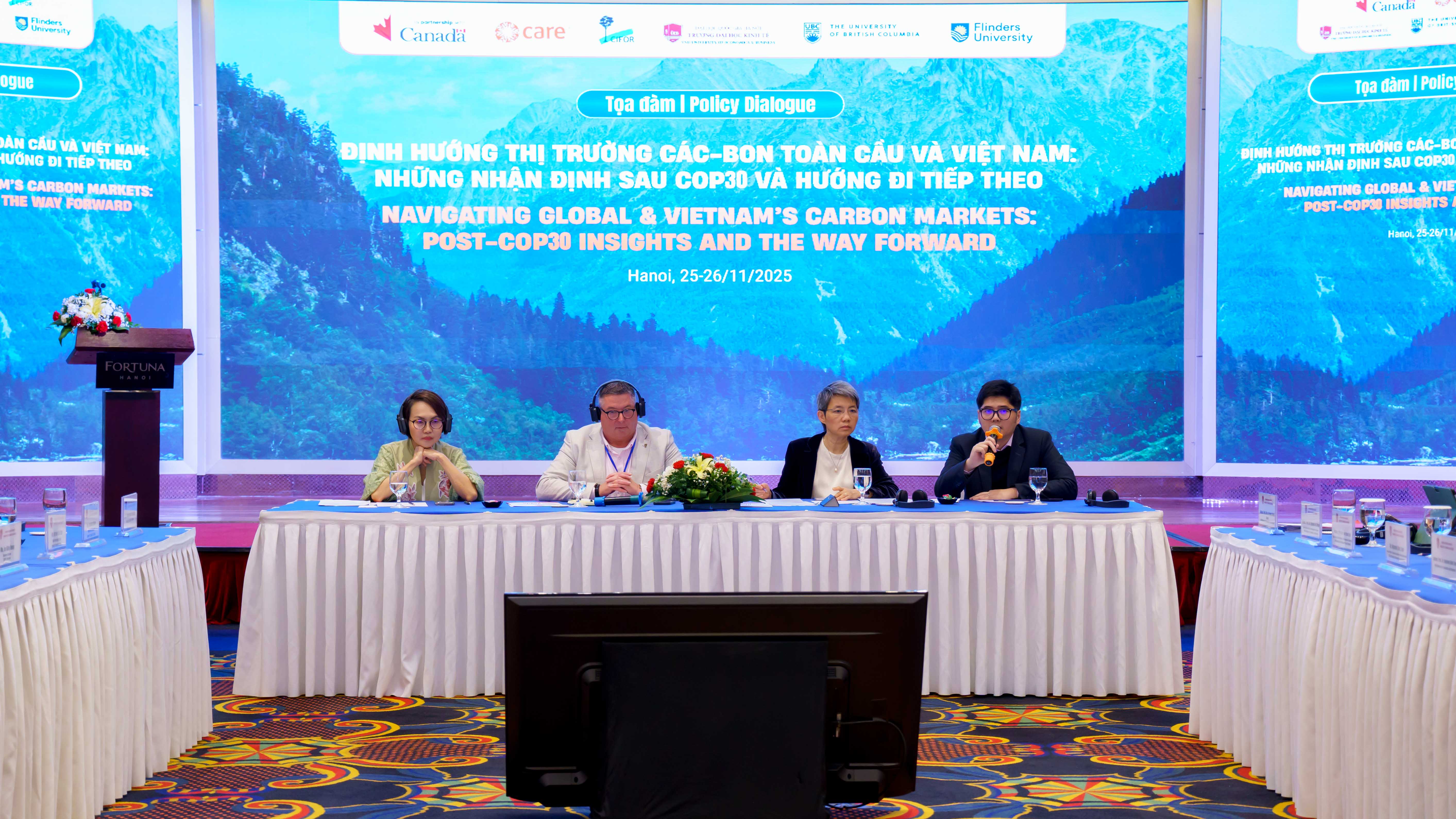 Ngay sau khi Hội nghị COP30 khép lại tại thành phố Belém (Brazil), Trường Đại học Kinh tế – Đại học Quốc gia Hà Nội (VNU-UEB) đã phối hợp với Đại học Flinders và Dự án Carbon For Good (CARE, CIFOR, Đại học British Columbia) tổ chức Hội thảo quốc tế “Định hướng thị trường carbon toàn cầu và Việt Nam: Những nhận định sau COP30 và hướng đi tiếp theo”.