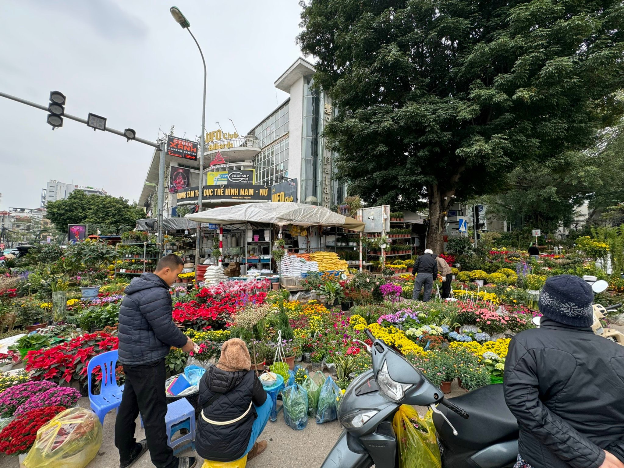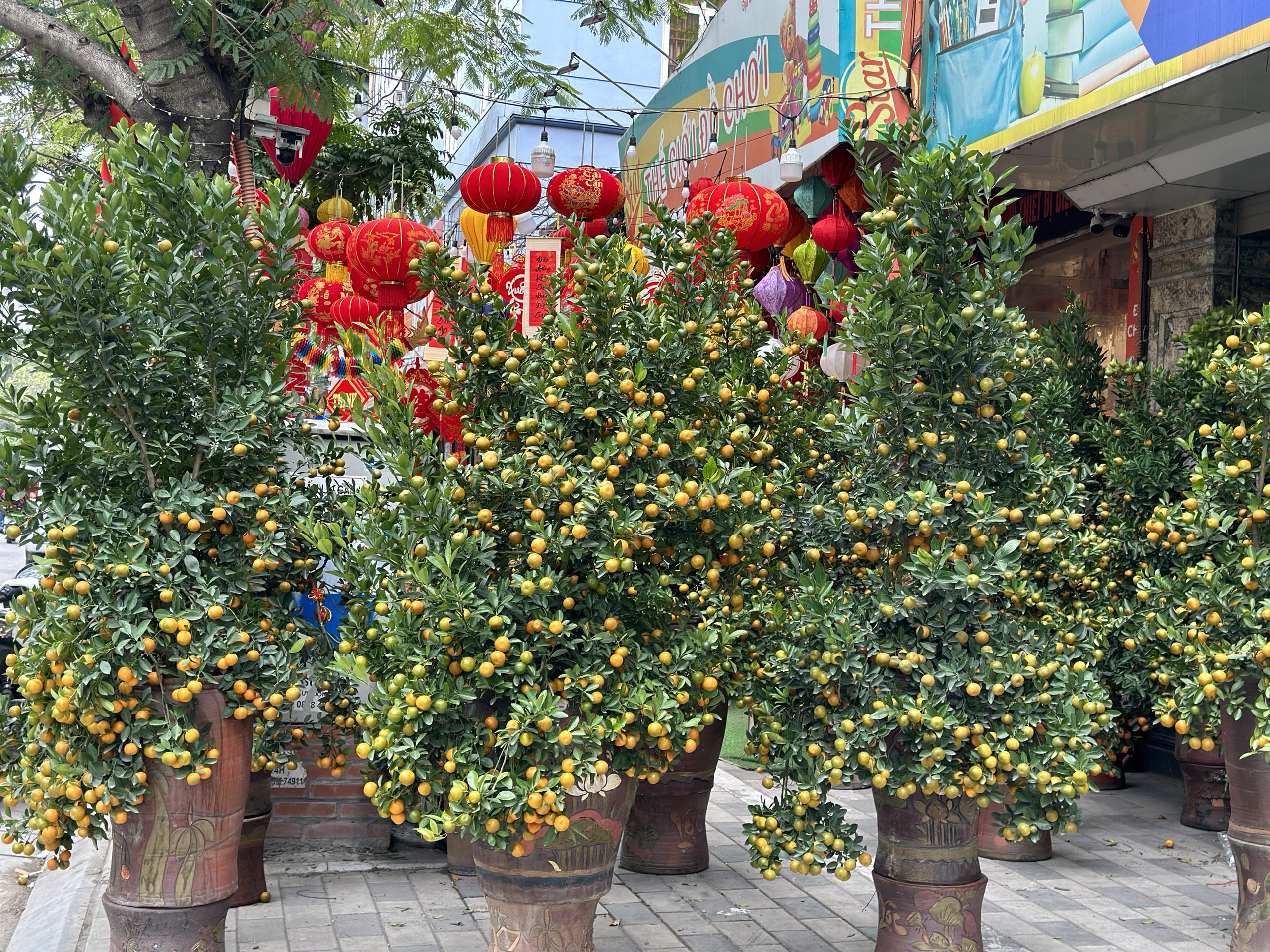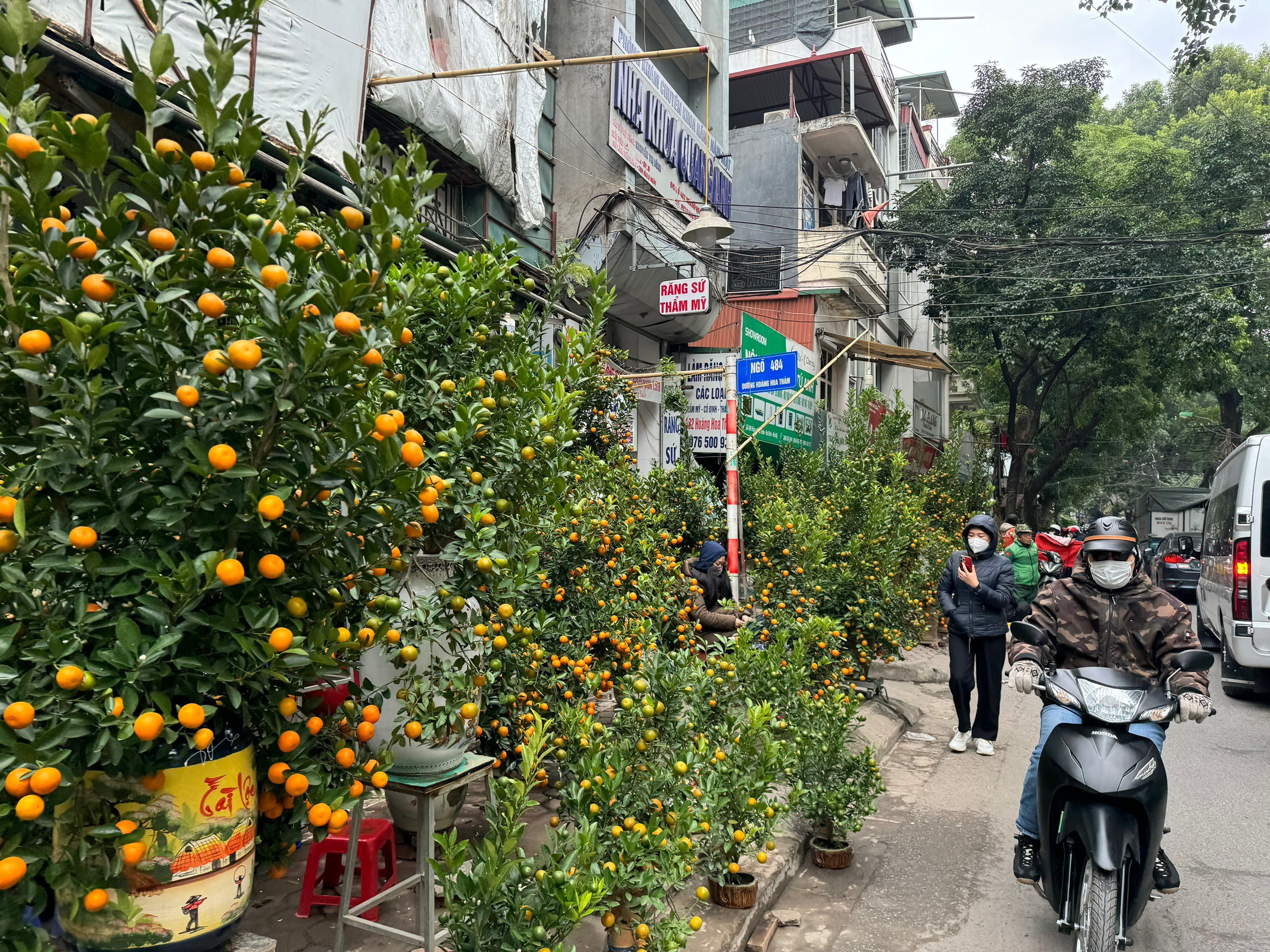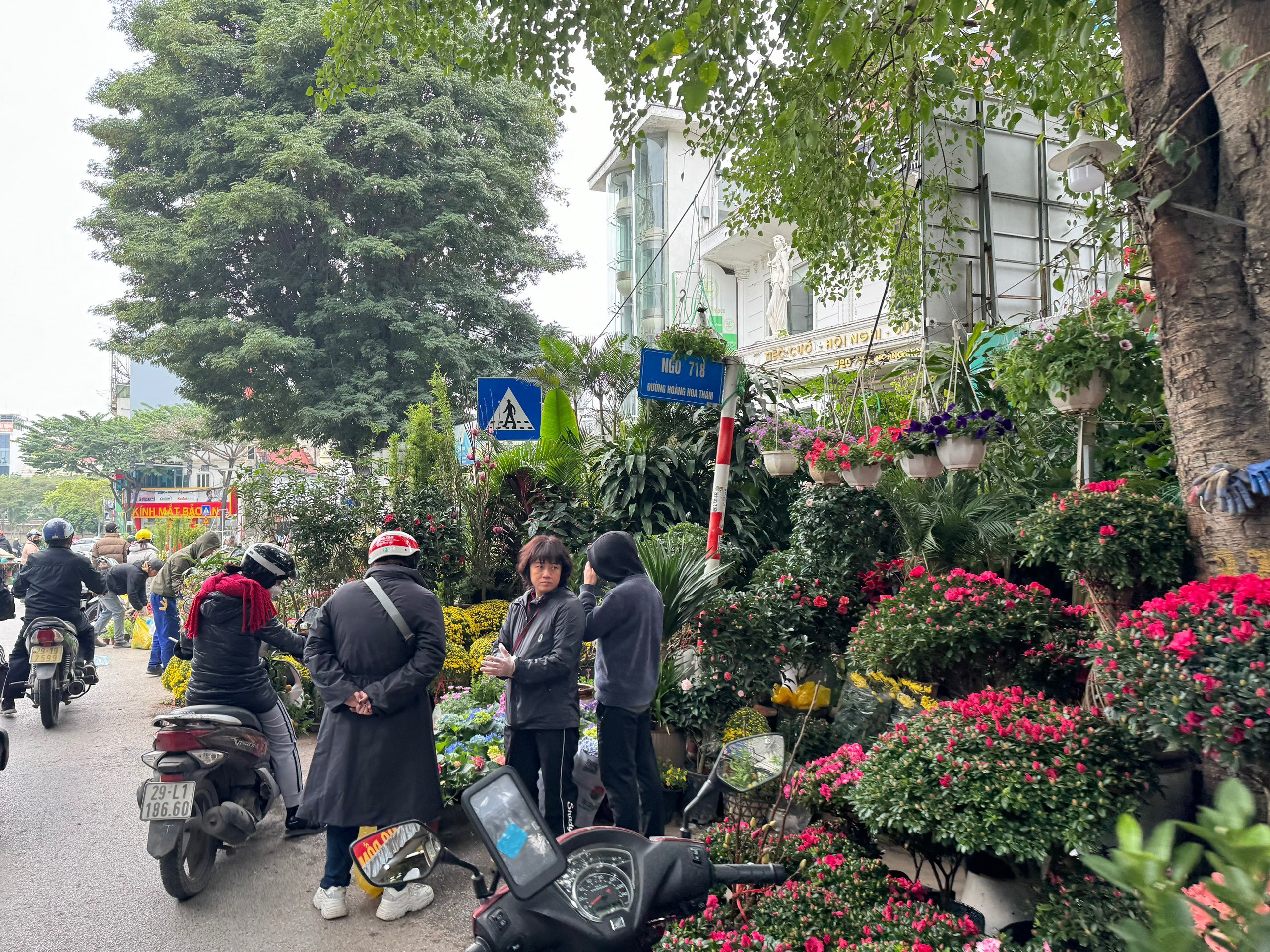 Muôn hoa xuống phố khoe sắc.Trên các tuyến phố ở quận Tây Hồ, Hà Nội, đào, quất, cây cảnh,… đã được các tiểu thương trưng bày kín hai bên đường để người dân thuận tiện chọn lựa mua sắm.