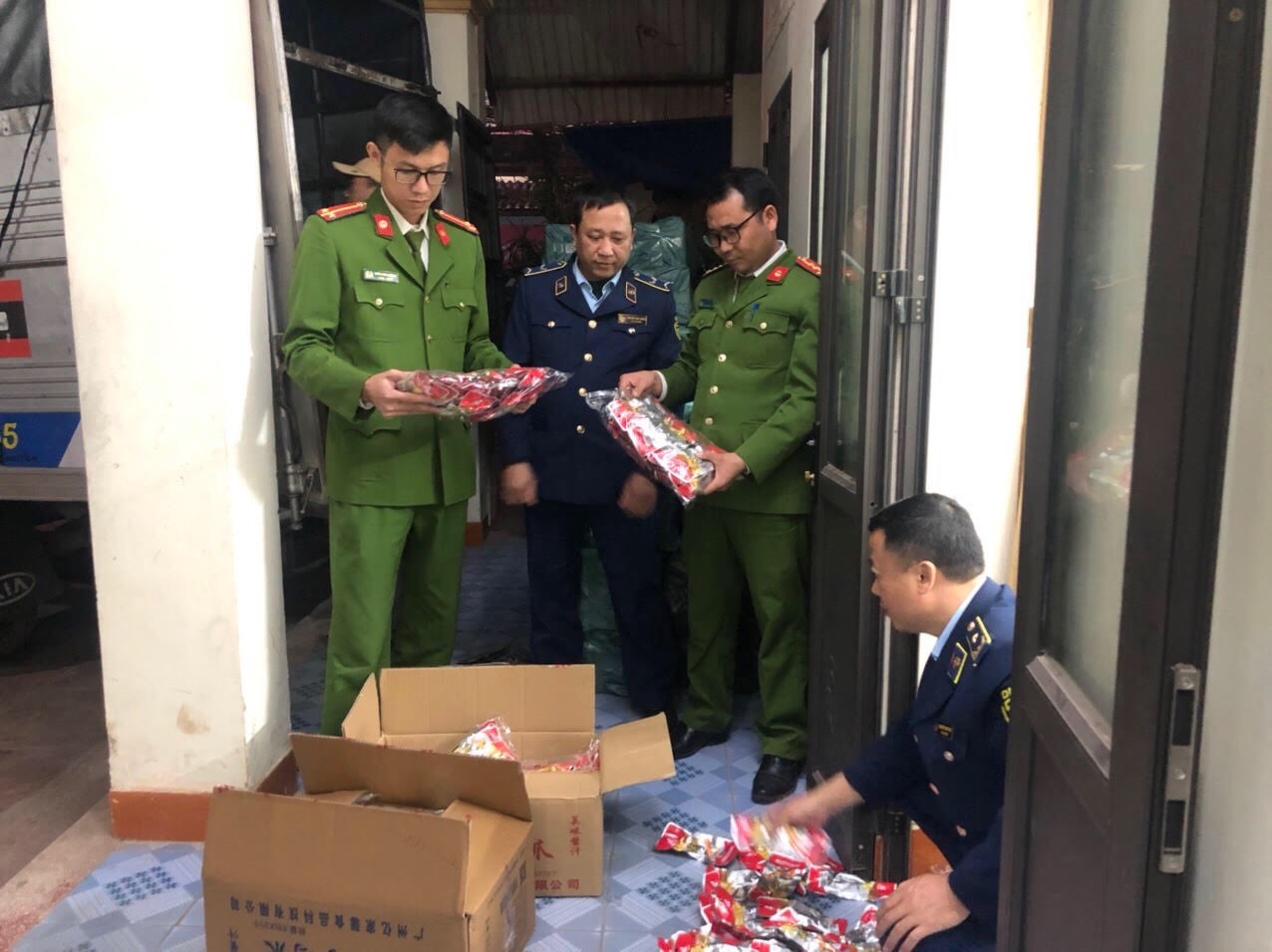 Lực lượng chức năng Lạng Sơn và Bắc Giang kiểm tra sản phẩm chân gà tẩm ướp ăn liền không rõ nguồn gốc xuất xứ.Một tổ công tác được giao phối hợp với UBND xã Xuân Dương, huyện Lộc Bình để kiểm tra ô tô tải 29H-065.26. Tuy nhiên, do địa bàn phức tạp và khá xa nên xe ô tô trên đã chạy sang địa phận xã Xa Lý, xã Phong Minh, huyện Lục Ngạn, tỉnh Bắc Giang.