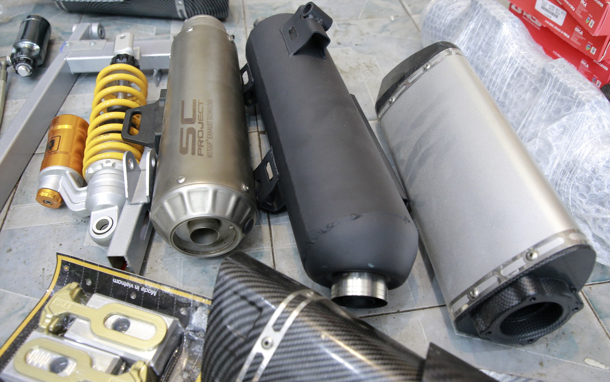 Thông tin từ Công an thành phố Tam kỳ, tỉnh Quảng Nam, ngày 01/12/2023, Đội Cảnh sát giao thông (CSGT) - trật tự, Đội Cảnh sát kinh tế thuộc Công an TP.Tam Kỳ và Công an phường Phước Hòa kiểm tra 2 cơ sở kinh doanh cửa hàng Đại Nam, số 67 Phan Châu Trinh và cửa hàng Minh Đức, số 69 Phan Châu Trinh. Qua kiểm tra tại đây lực lượng chức năng đã phát hiện nhiều loại phụ tùng, thiết bị để phục vụ độ, chế xe máy. Cụ thể, nhiều thiết bị giảm xóc, ống xả, đèn pha, đèn sương mù, cặp vành xe và một số phụ tùng khác làm đẹp xe máy, tất cả các loại phụ tùng này chủ yếu nhập lẻ về kinh doanh lại nên không có hóa đơn, chứng từ, nguồn gốc, xuất xứ.
