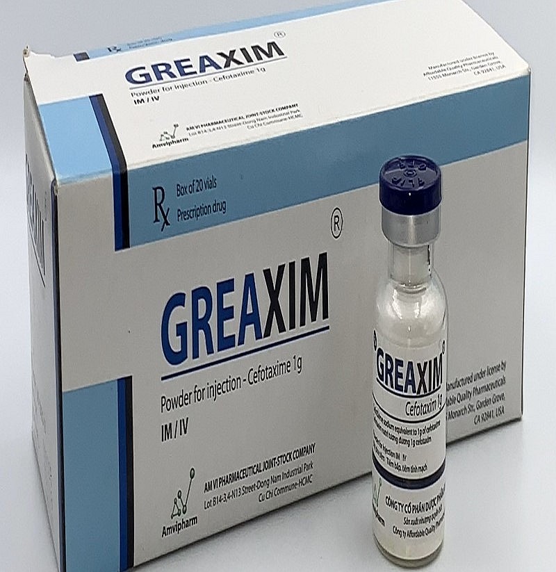 Thuốc bột pha tiêm Greaxim 2g (ceforaxim dưới dạng Cefotaxim soduium 2g) số giấy đăng ký lưu hành VD-33386-19, gồm 3 lô: 060822. Hạn dùng 11/08/2024, 070822, hạn dùng 14/08/2024; 080822 hạn dùng 15/08/2024.
