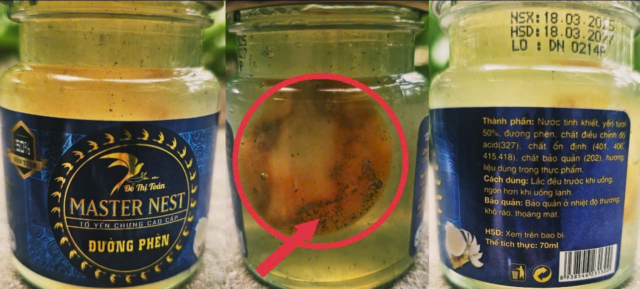 Kết quả kiểm nghiệm đối chứng của Quỹ Chống hàng giả chỉ ra rằng: sản phẩm Tổ yến cao cấp (70ml) mang thương hiệu Đỗ Thị Toán Master Nest trên nhãn ghi thành phần 50% yến tươi có hàm lượng đạm/protein là 0.171g/100g (?)