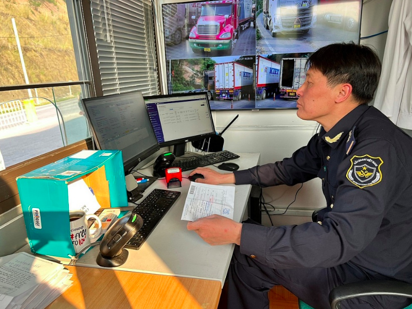 Công chức Hải quan Tân Thanh quản lý phương tiện vận tải trên nền tảng cửa khẩu số. Ảnh: H. Nụ