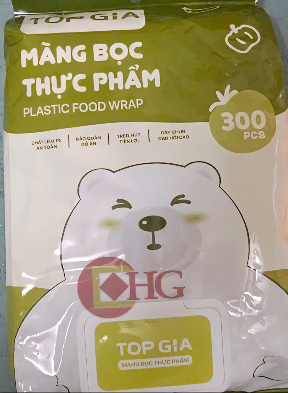 Sản phẩm "Khăn lau đa năng" và "Màng bọc thực phẩm" mang thương hiệu Top Gia không có ngày sản xuất.
