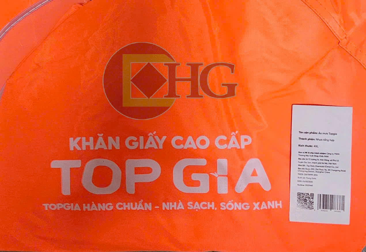 Sản phẩm áo mưa mang thương hiệu Top Gia "mập mờ" về thành phần.