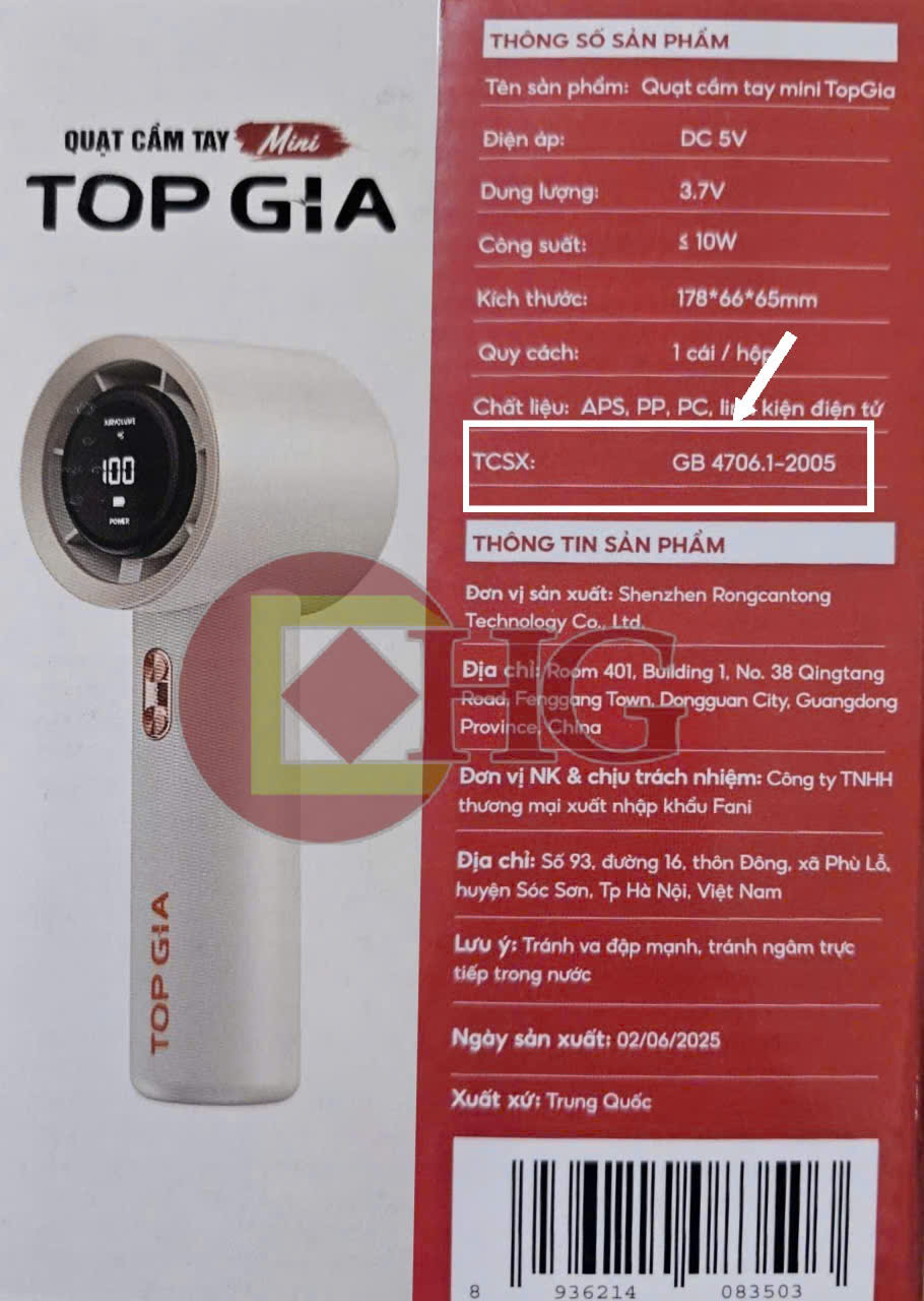 Người tiêu dùng nghi ngờ sản phẩm có tính xu hướng "Quạt điện cầm tay mini" mang thương hiệu Top Gia có số tiêu chuẩn cơ sở của 20 năm về trước?Trong khi đây là mặt hàng công nghệ, thường xuyên thay đổi mẫu mã, cấu tạo, kỹ thuật thì việc áp dụng tiêu chuẩn lỗi thời như vậy là điều không thể chấp nhận.