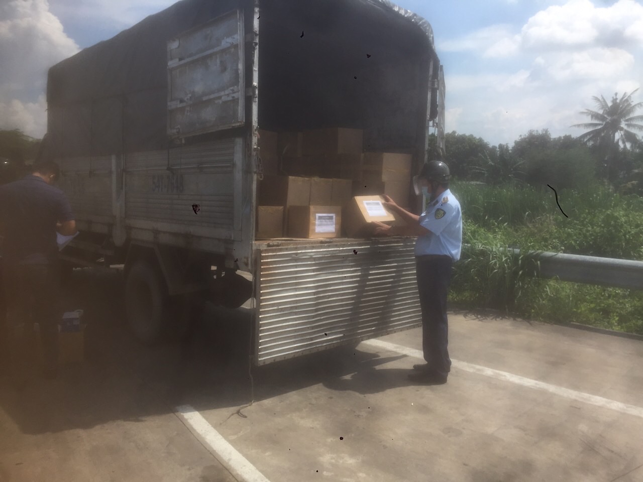 Khi công chức Đội QLTT số 2 cùng Tổ công tác chặn dừng xe phương tiện ô tô tải biển kiểm soát 54T.7648 tại Chốt số cầu Mỹ Lợi thuộc xã Bình Đông, thị xã Gò Công để kiểm soát về phòng, chống dịch Covid-19; phát hiện nghi vấn hàng hóa vận chuyển trên xe có dấu hiệu vi phạm. Do vậy, Tổ công tác đã chuyển giao cho Đội QLTT số 2 để kiểm tra theo quy định.