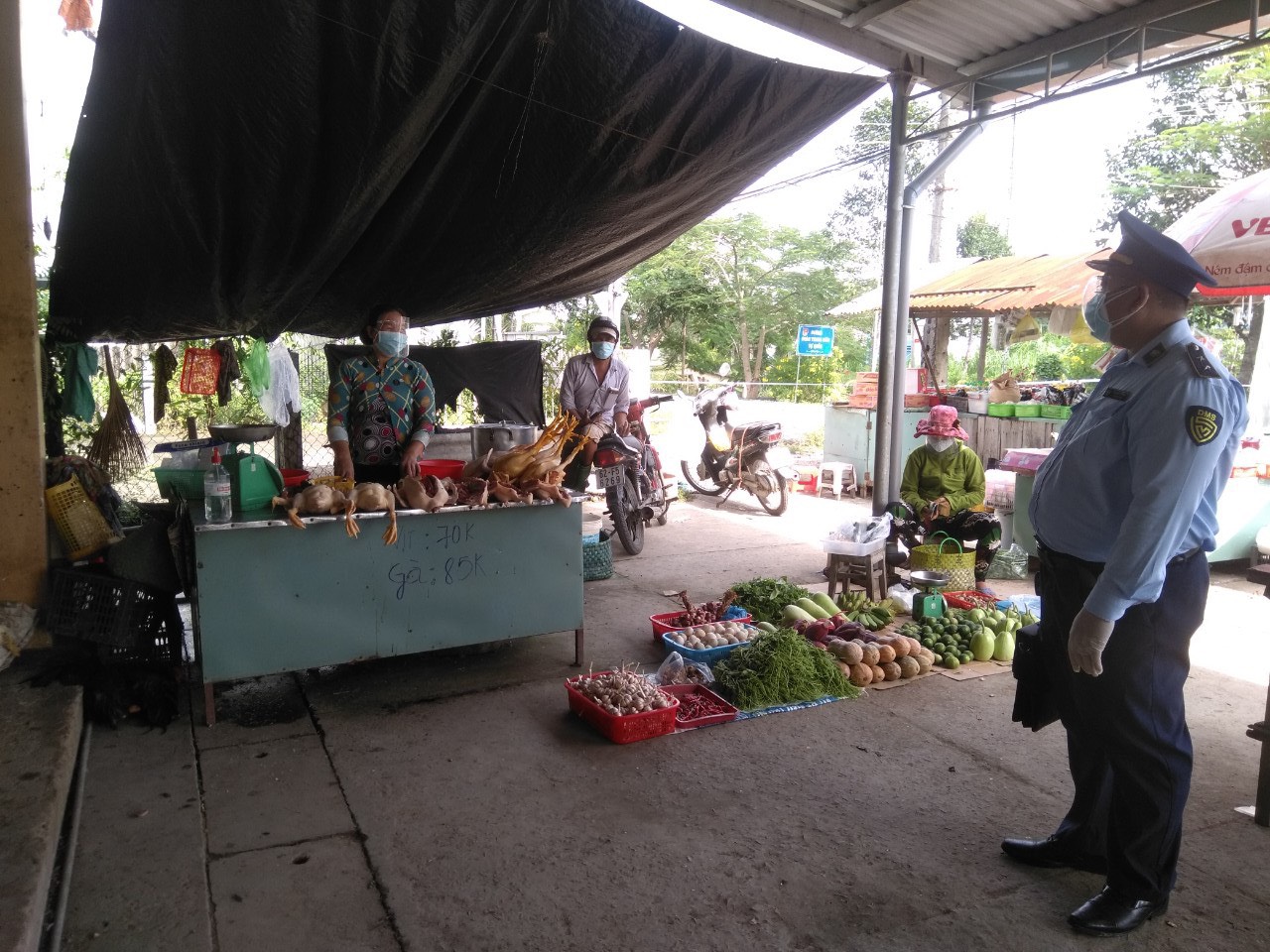 Đội QLTT số 4 giám sát tại chợ trên địa bàn huyện Chợ Gạo